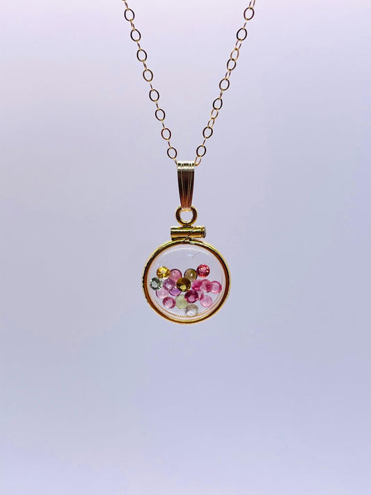 12.5 mm Handmade 14k Solid Gold Shaker Locket With Multi-Colored Tourmaline Gemstones, FREE SCREWDRIVER