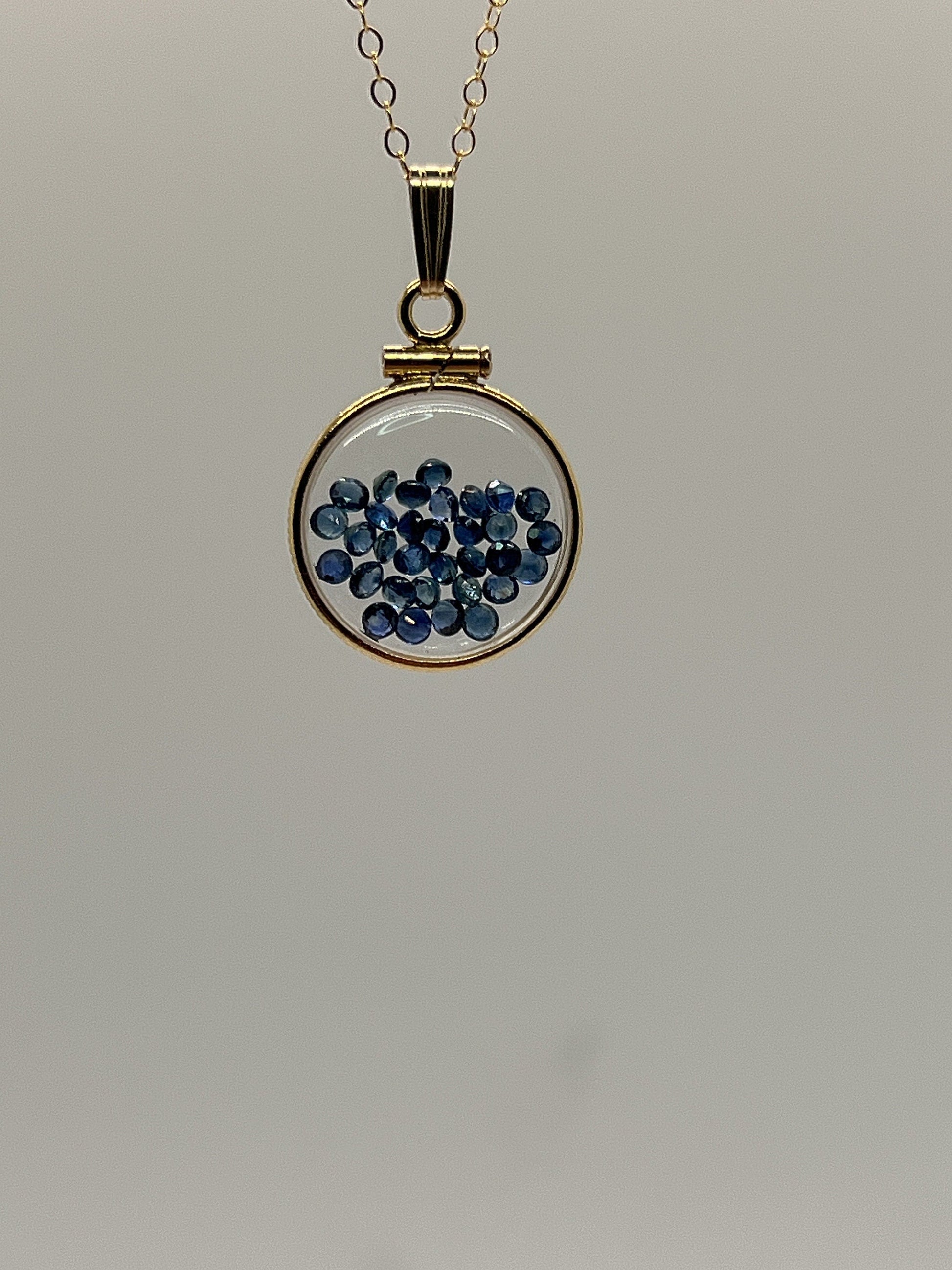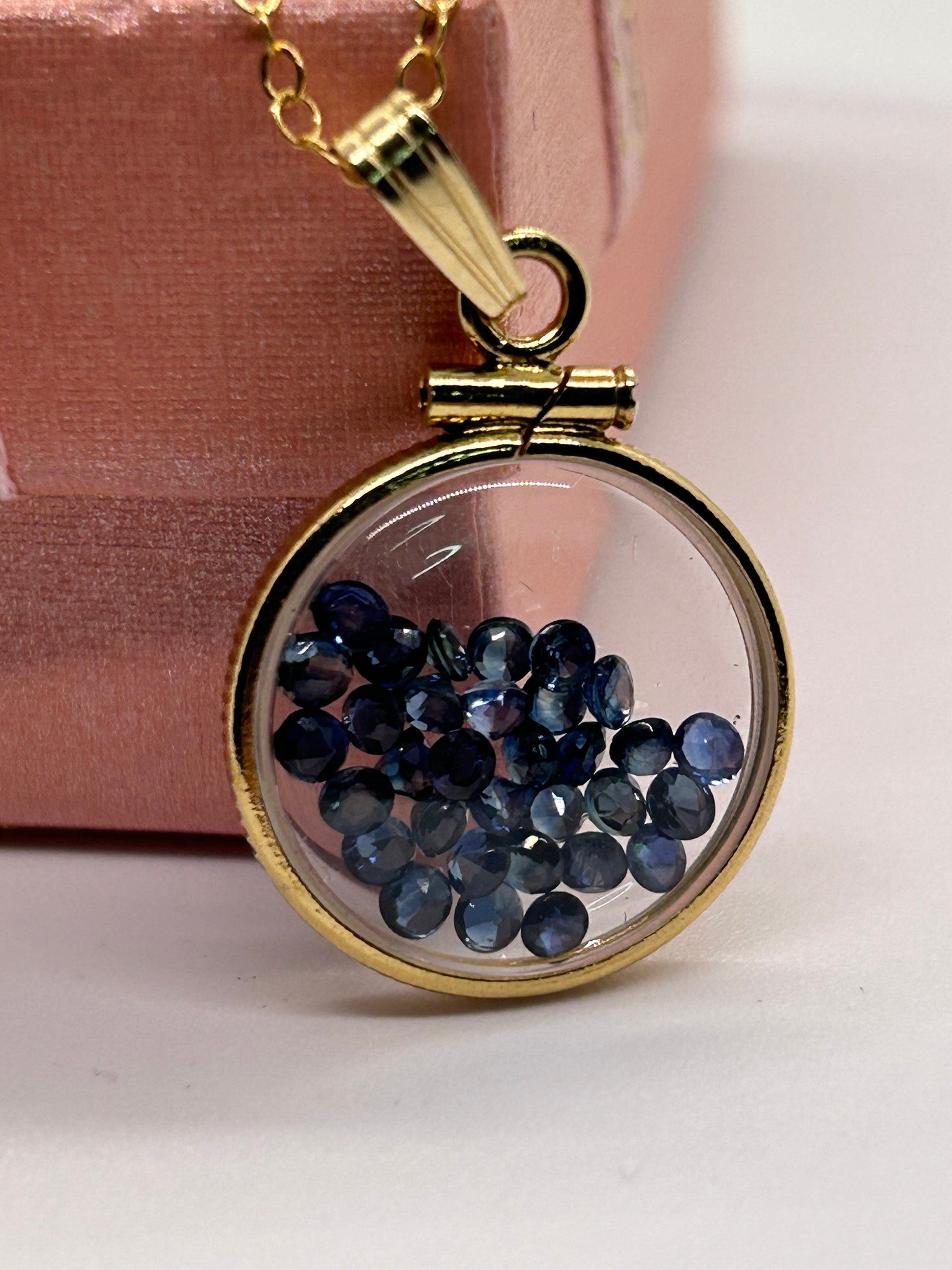 14k Solid Gold Handmade Dime size Sapphire shaker locket, 2.0 TCW, September birthstone.