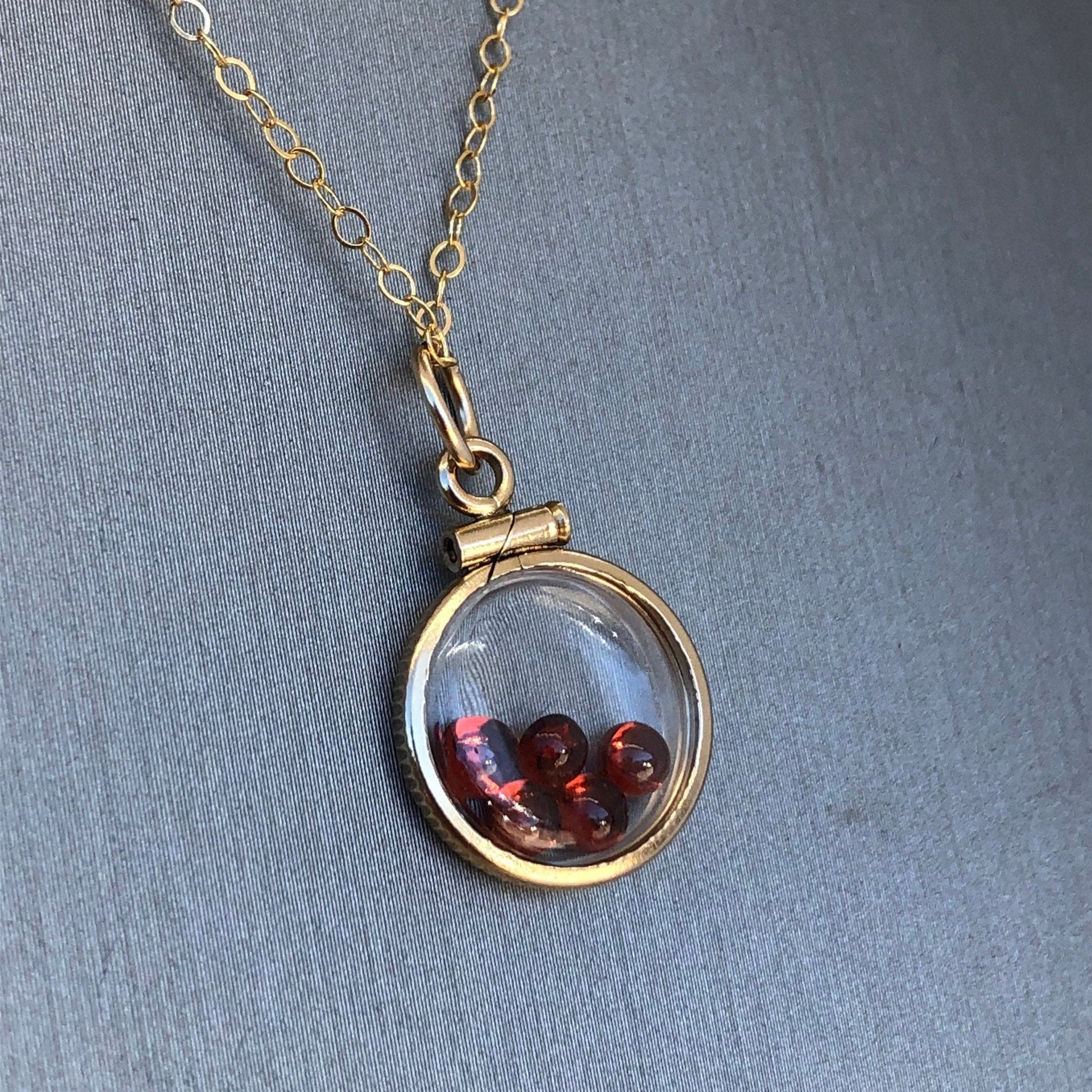 Dainty Handmade garnet shaker locket, 14k gold filled w/ 1.1 TCW of genuine gems, January birthstone, with chain