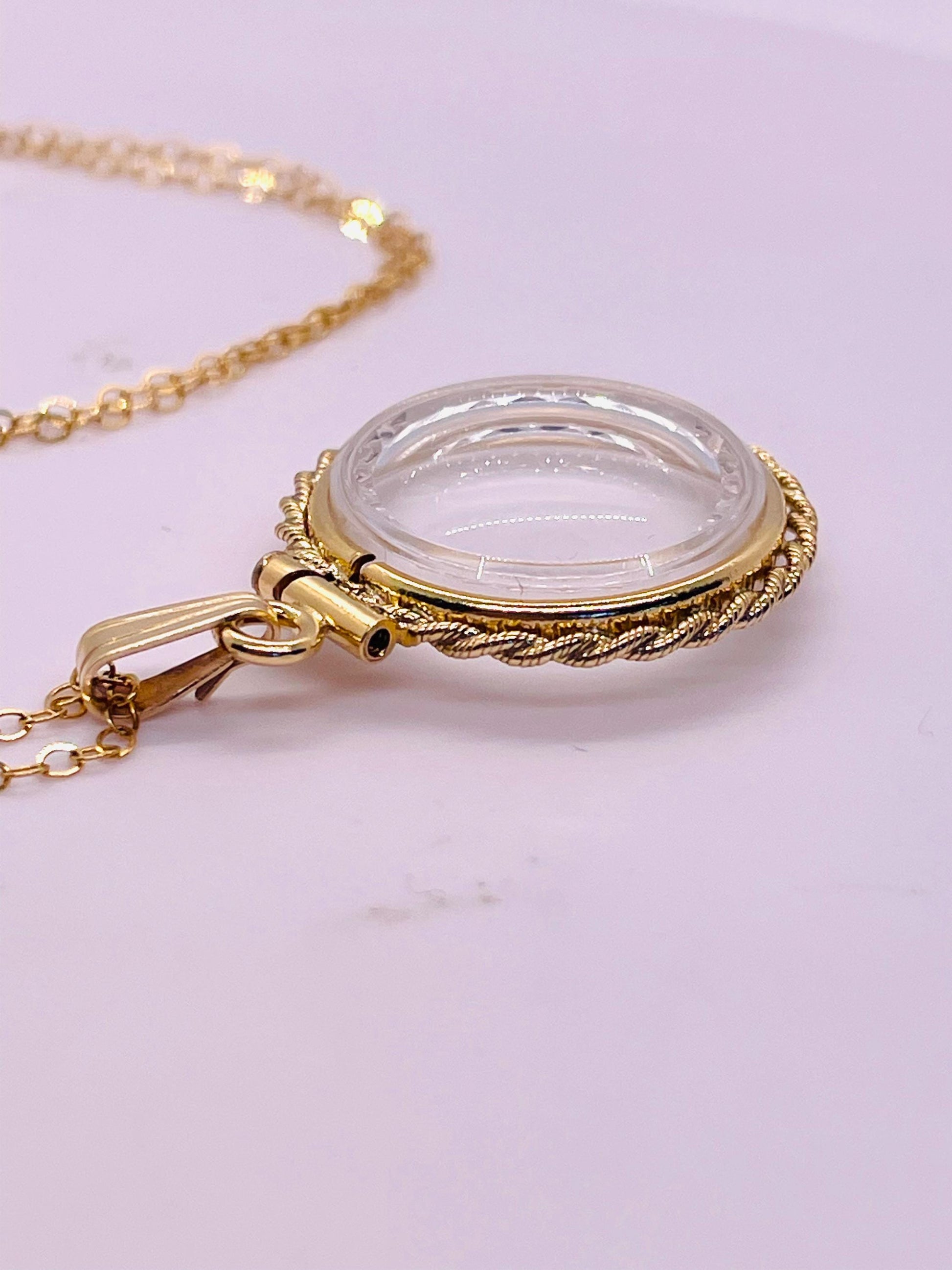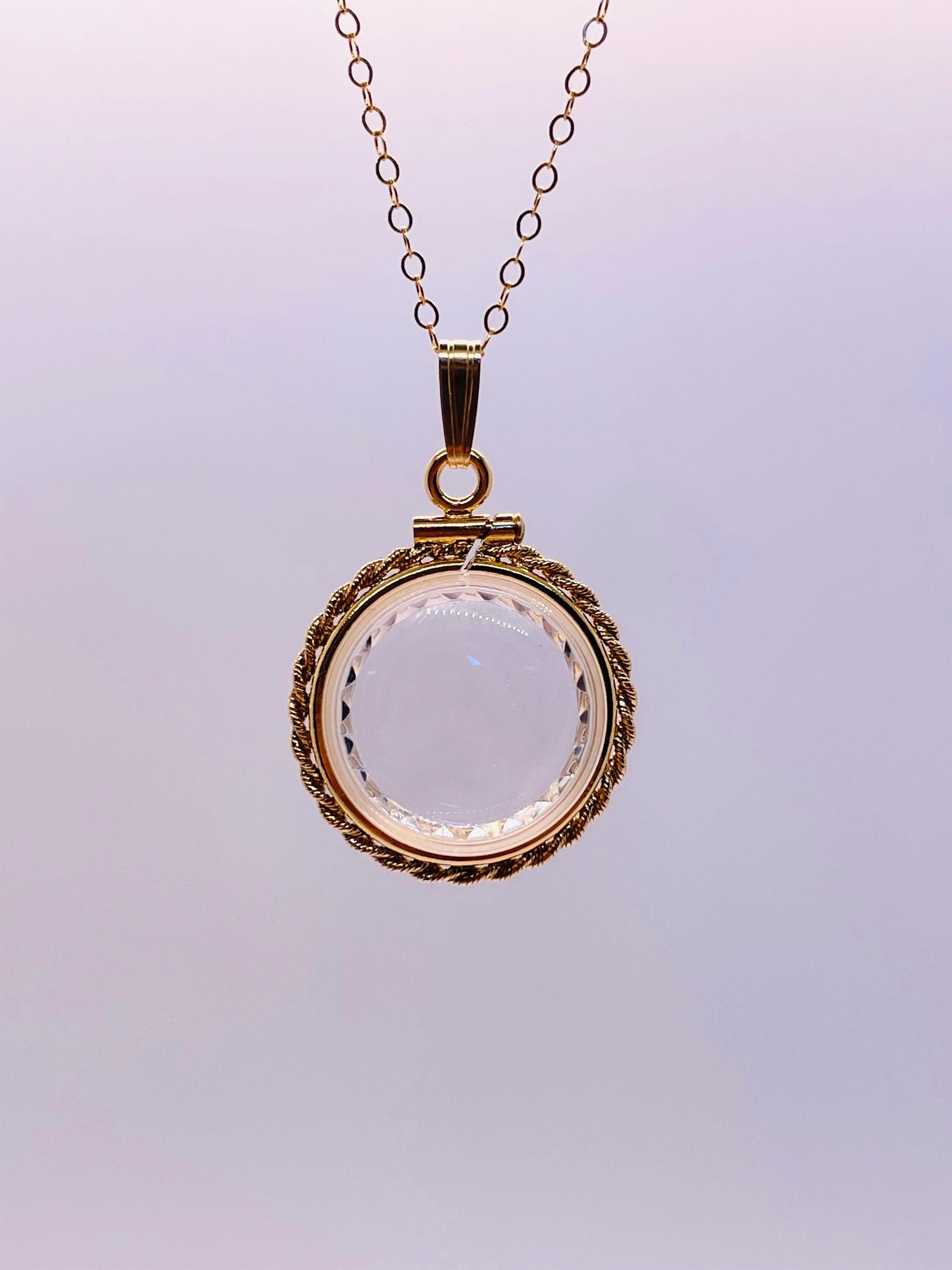 Empty Customizable 18mm Handmade 14k Gold Filled Rope Edge Diamond Cut Crystal Shaker Locket Necklace w/ Free Screwdriver