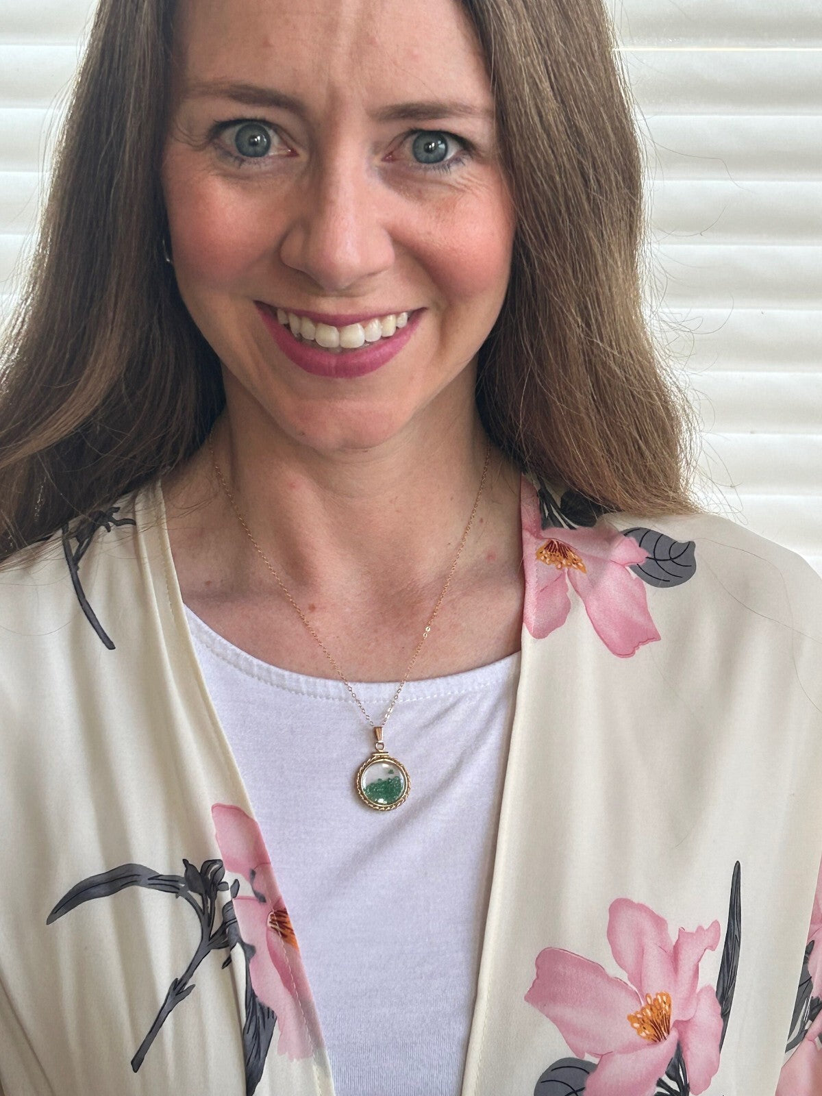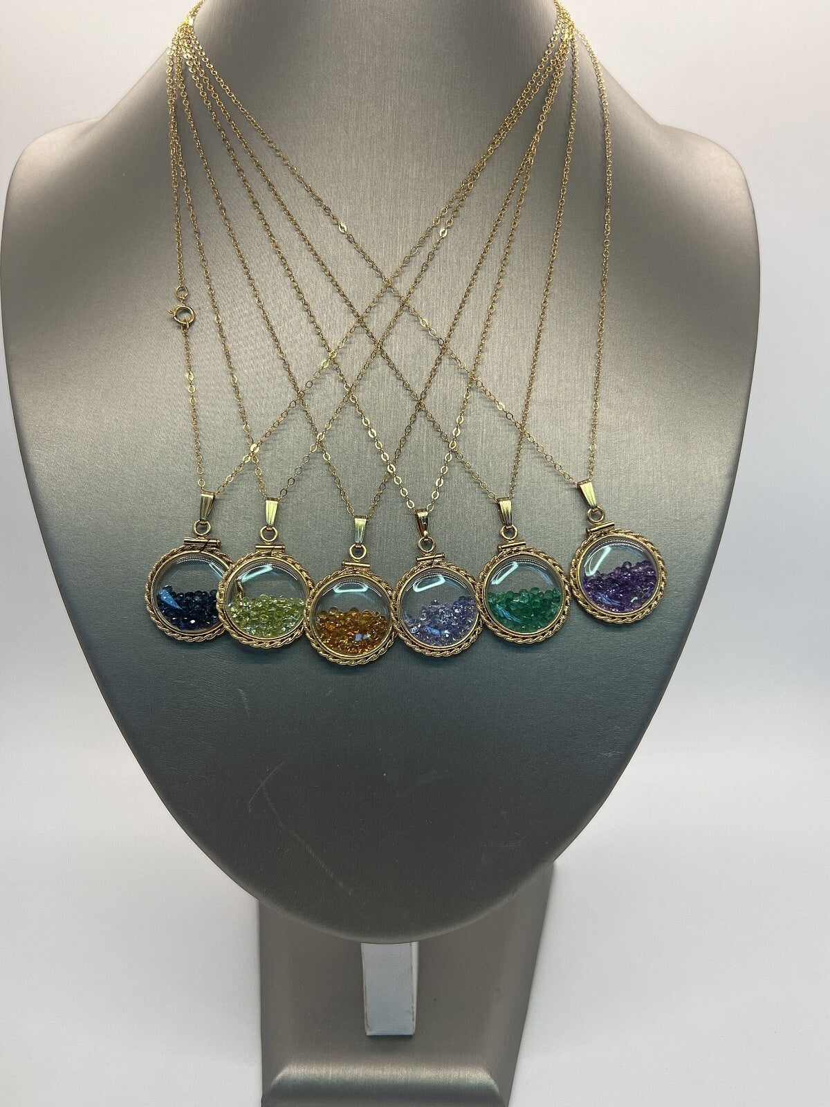 Up for sale: NEW Nickel sized 21 mm Handmade 14k gold filled shaker locket with a wonderful ROPE Edge feature. These lockets can be opened with a small screwdriver. They are new and comprised of a gold-filled bezel, two Lucite covers and a gold-filled snap bail. You can buy the locket only without a chain or choose a 16-24” gold-filled cable chain at checkout. Locket only option comes with a 14k gold-filled beautiful, ribbed snap bail so you can add your own chain. This shaker locket can be viewed from both sides and will store and display your little treasures. You can put small gems, gold, hair, anything you can imagine. Pictured is this locket with 1.75 TCW of many different gems like tanzanite, amethyst, citrine, emeralds, sapphires and peridot. These lockets are diminutive designed for small treasures. I really like this locket with 2mm gems or smaller items. All of them gems pictured in the examples are 2mm. It allows for a thin layer of gems that fill the locket well and allow light to highlight the beautiful colors of the gems. This is a small creation designed for little treasures.
