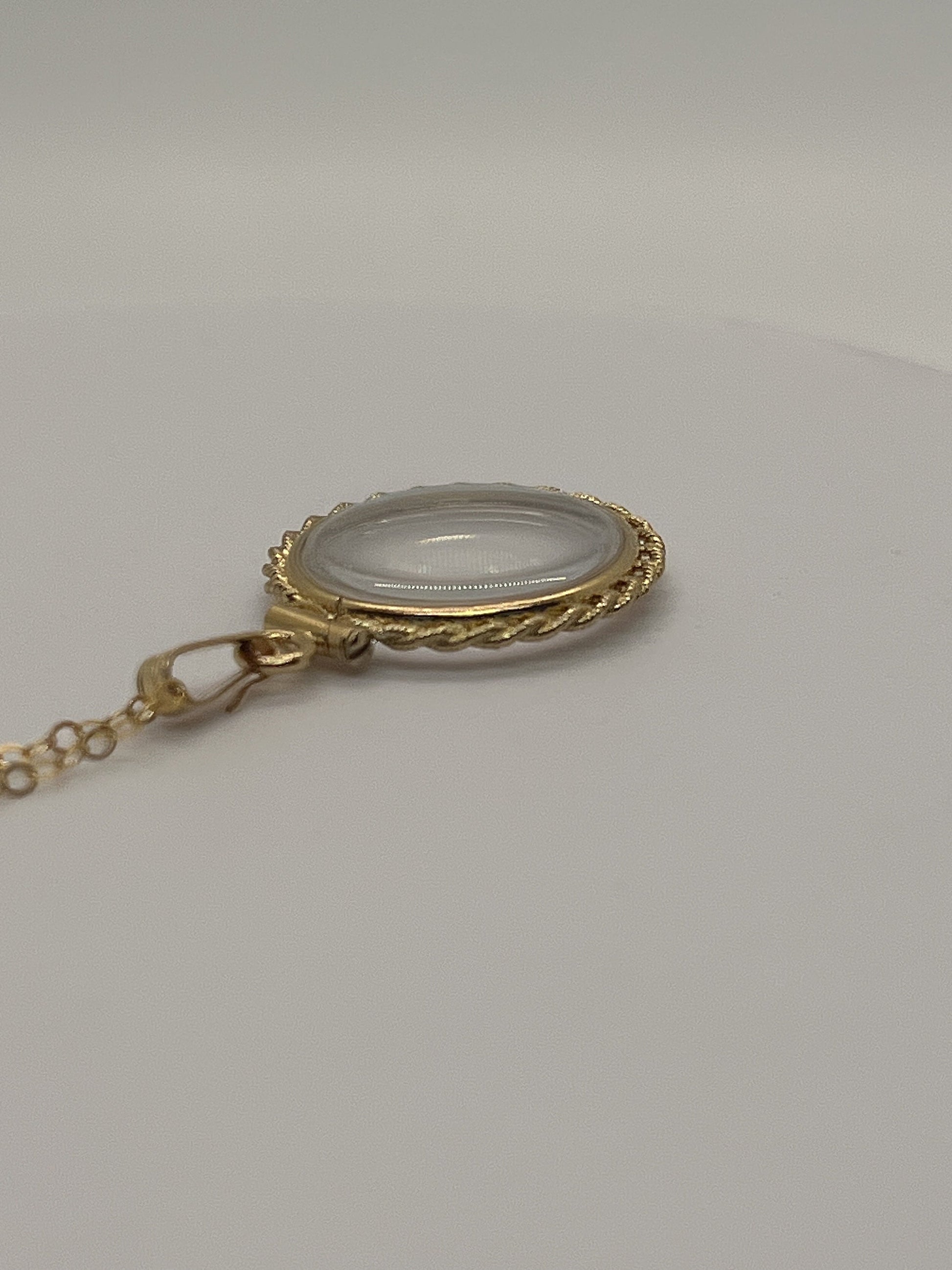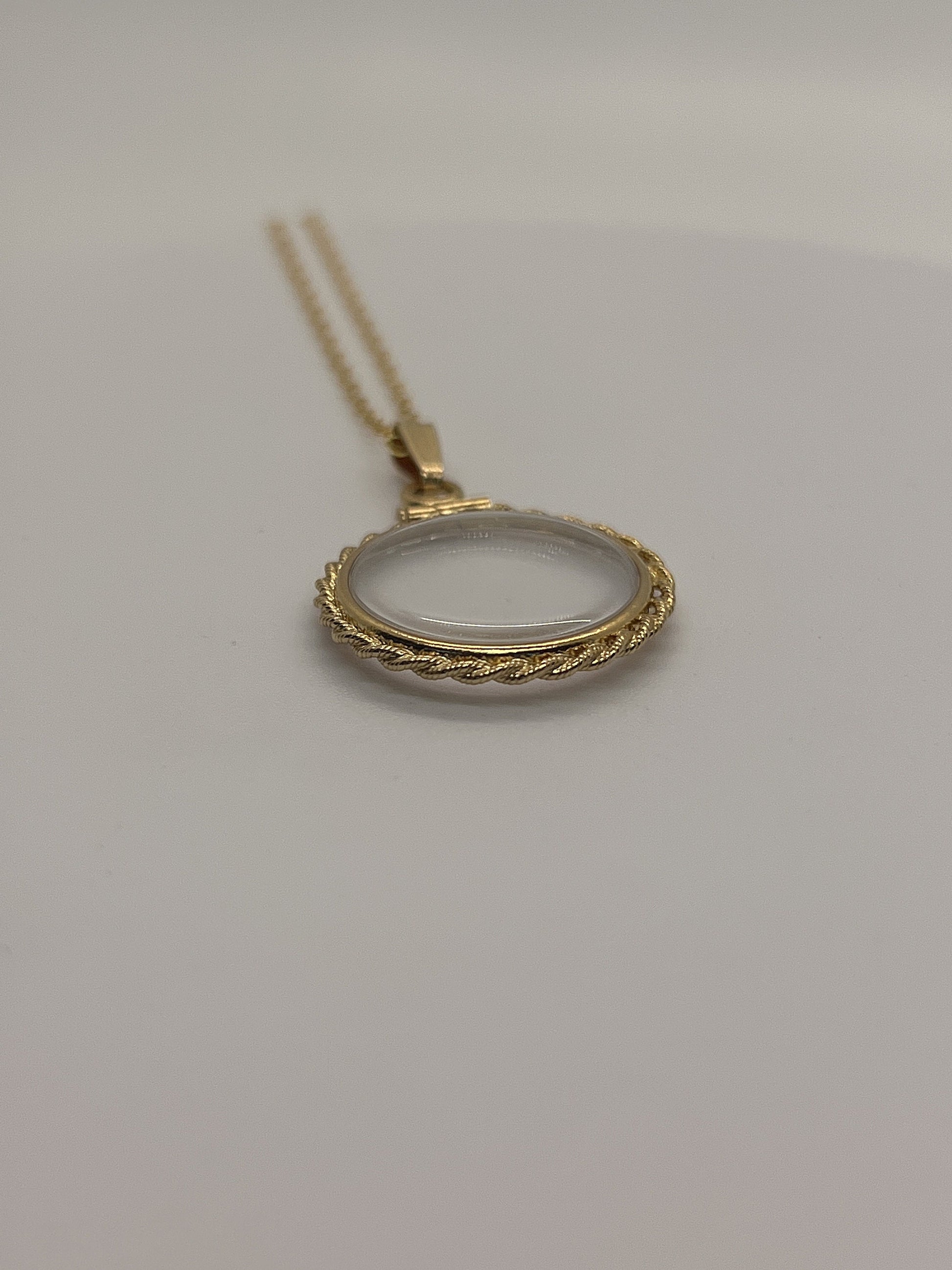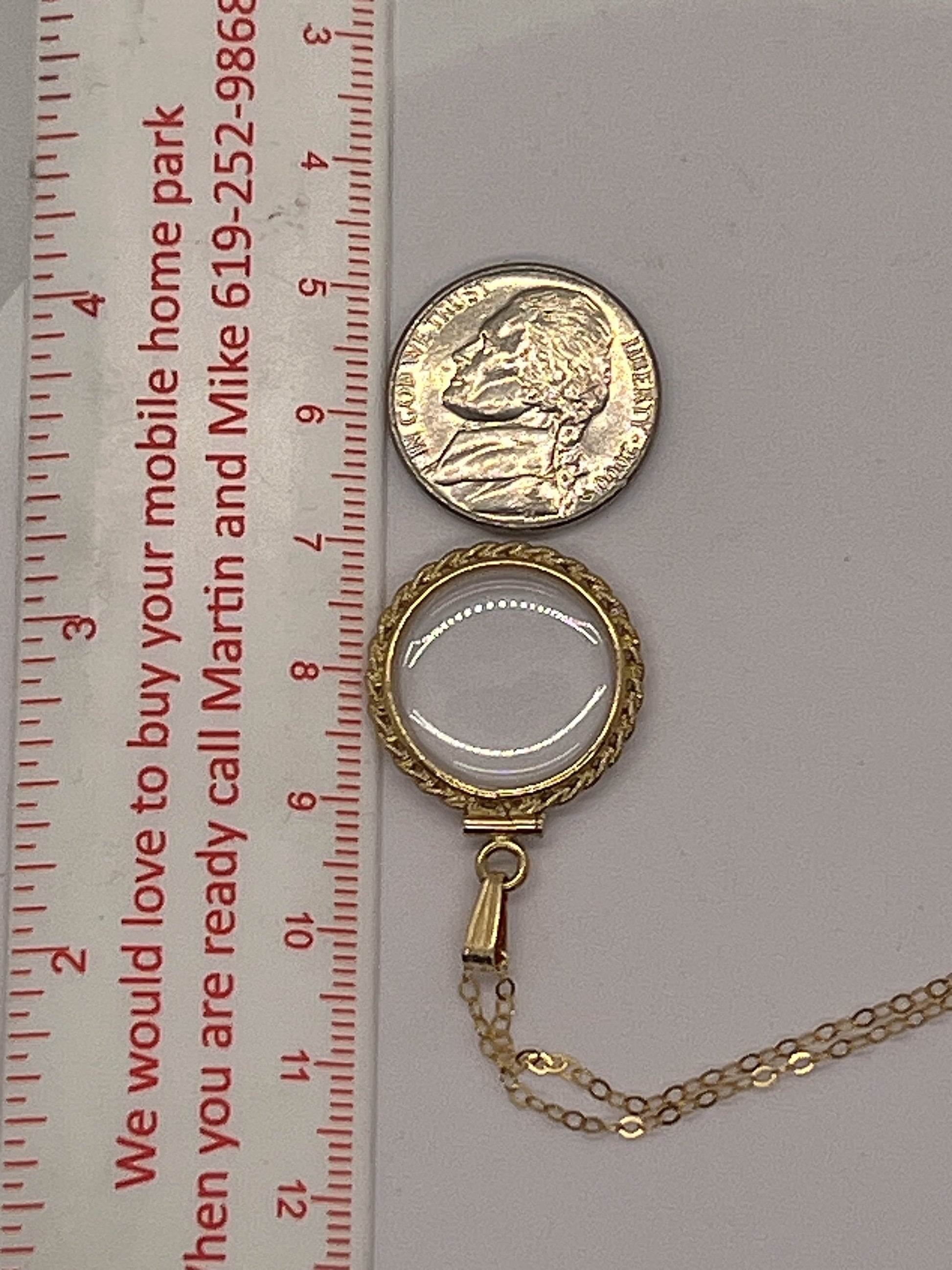 Up for sale: NEW Nickel sized 21 mm Handmade 14k gold filled shaker locket with a wonderful ROPE Edge feature. These lockets can be opened with a small screwdriver. They are new and comprised of a gold-filled bezel, two Lucite covers and a gold-filled snap bail. You can buy the locket only without a chain or choose a 16-24” gold-filled cable chain at checkout. Locket only option comes with a 14k gold-filled beautiful, ribbed snap bail so you can add your own chain. This shaker locket can be viewed from both sides and will store and display your little treasures. You can put small gems, gold, hair, anything you can imagine. Pictured is this locket with 1.75 CTW of many different gems like tanzanite, amethyst, citrine, emeralds, sapphires and peridot. These lockets are diminutive designed for small treasures. I really like this locket with 2mm gems. All of them gems pictured in the examples are 2mm. It allows for a thin layer of gems that fill the locket well and allow light to highlight the beautiful colors of the gems. This is a small creation designed for little treasures.