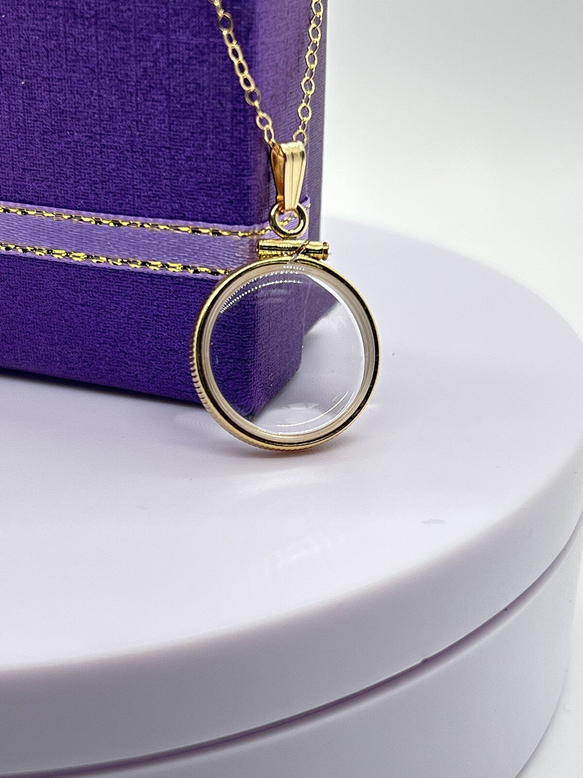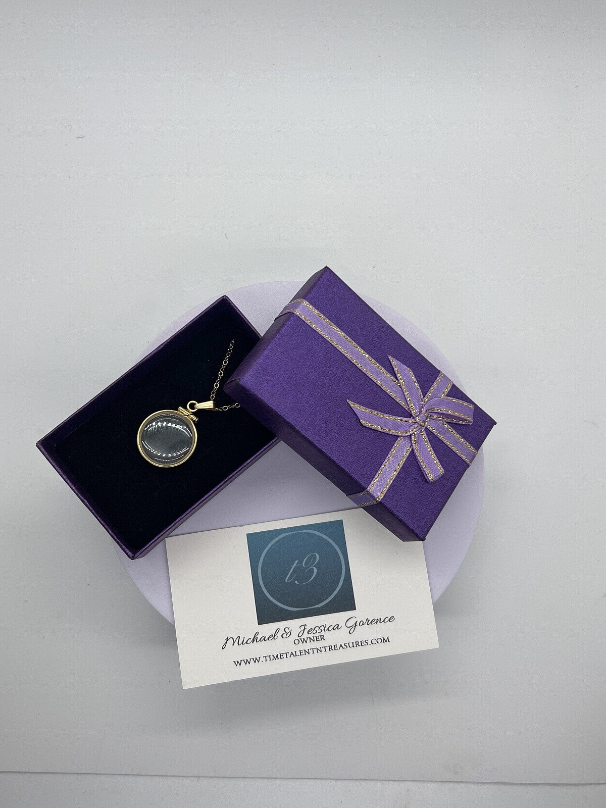 Up for sale: NEW sized 19mm Handmade 14k gold filled shaker locket. This one can handle up to 5mm gems. These lockets can be opened with a small screwdriver. They are new and comprised of a gold-filled bezel, two Lucite covers and a gold-filled snap bail. You can buy the locket only without a chain or choose a 16-24” gold-filled cable chain at checkout. Locket only option comes with a 14k golf-filled beautiful, ribbed snap bail so you can add your own chain. This shaker locket can be viewed from both sides and will store and display your little treasures. You can put gems, gold, hair, anything you can imagine. Pictured is this locket with 3.75 CTW of colorful tourmaline (not included). See all of my listing for examples and ideas. What will you put in yours? Ask if you would like a custom creation with gems of your choosing (additional cost-see information below).