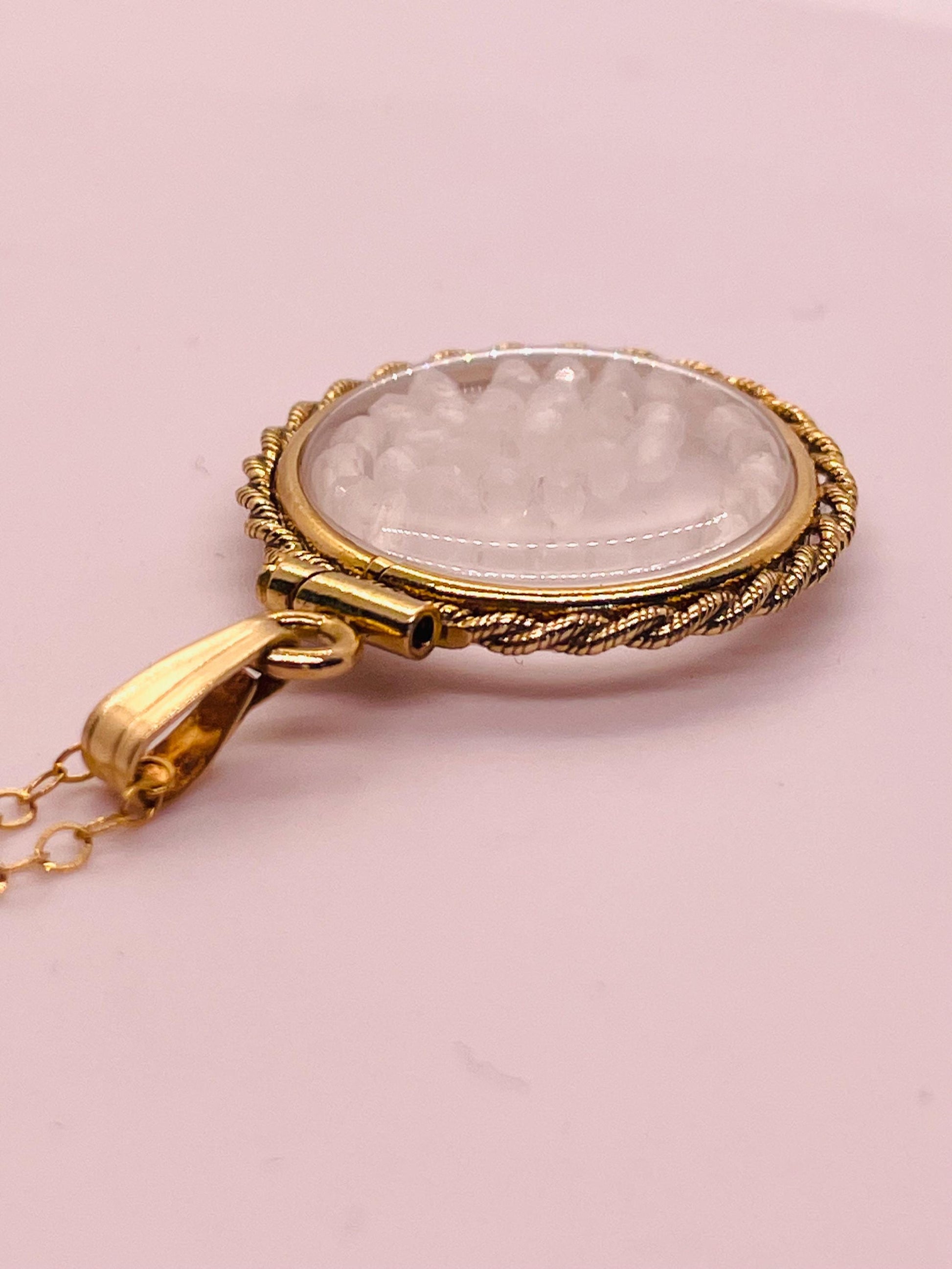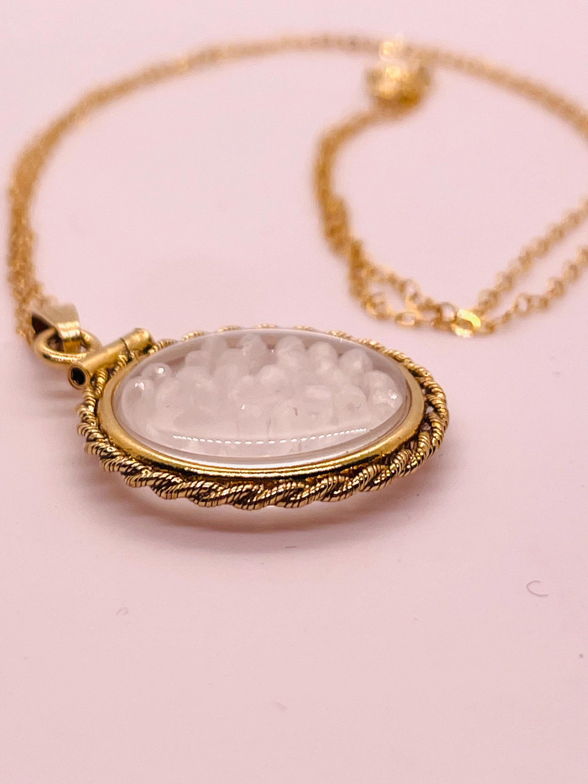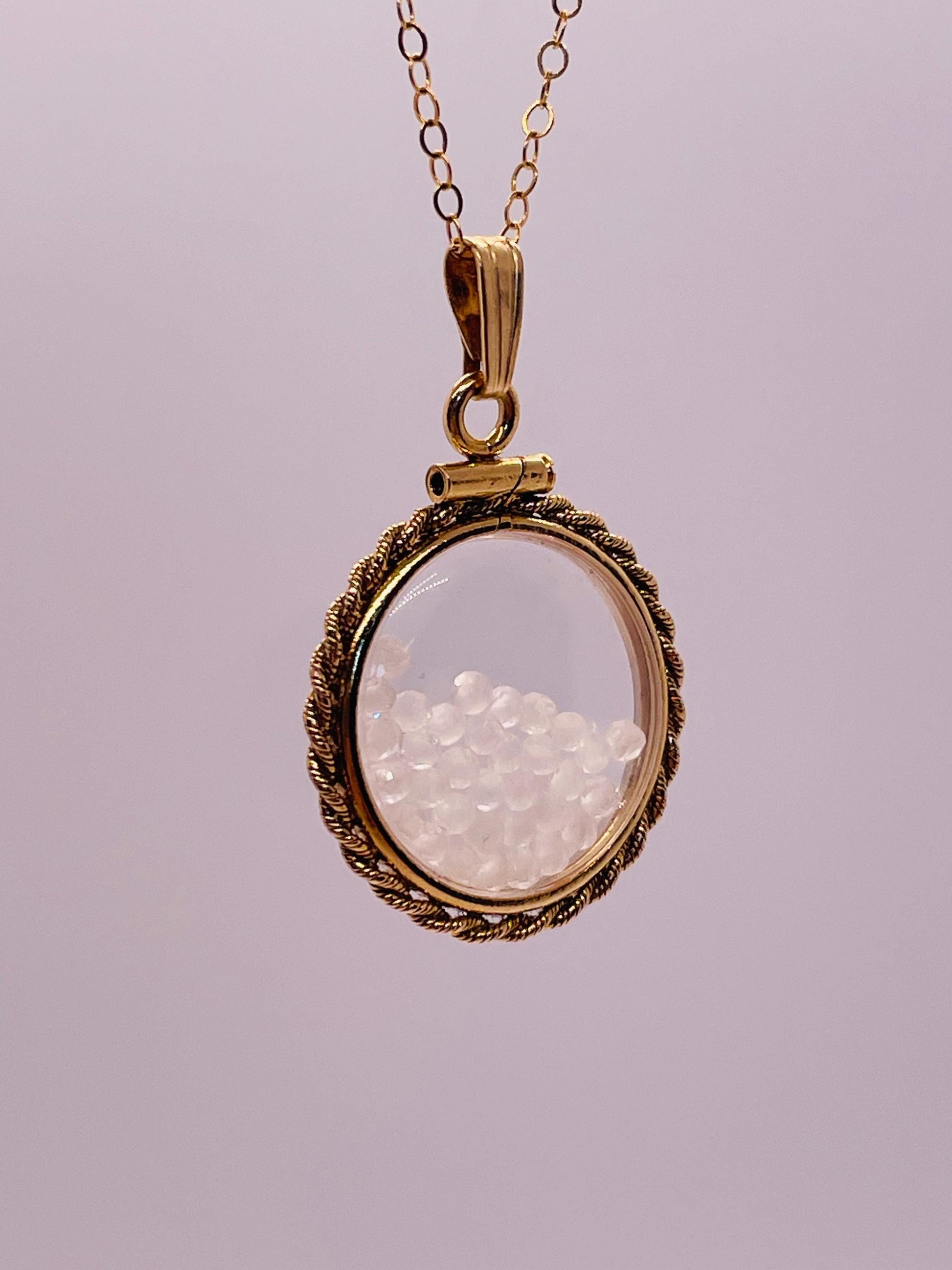 Hand Made 21 mm Nickel Size 14k Gold Filled Lucite Genuine Labradorite Shaker Locket with ROPE EDGE and Beautiful Bead Crystals.