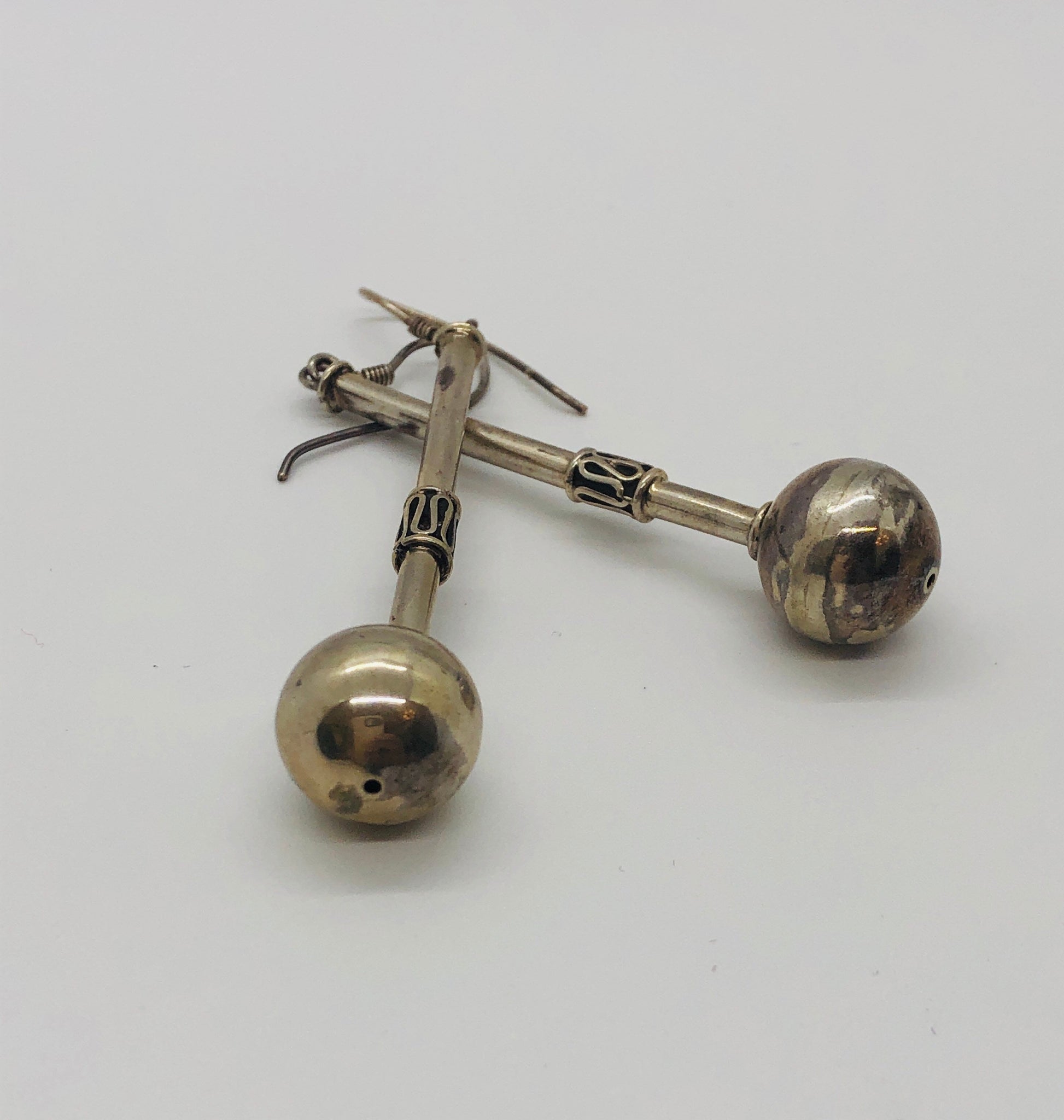 Handmade Sterling Silver Dangle Earrings Indonesia, Vintage new old stock. These were bought by me in the late 90's at an estate sale. They have been in my attic since then. They were new unworn items. These are made of sterling silver. They are French hook earrings and are finely crafted in Indonesia. Very large substantial earrings with a wonderful design. They look like hammers. There are only 2 pairs total and when they are gone, they are gone:)