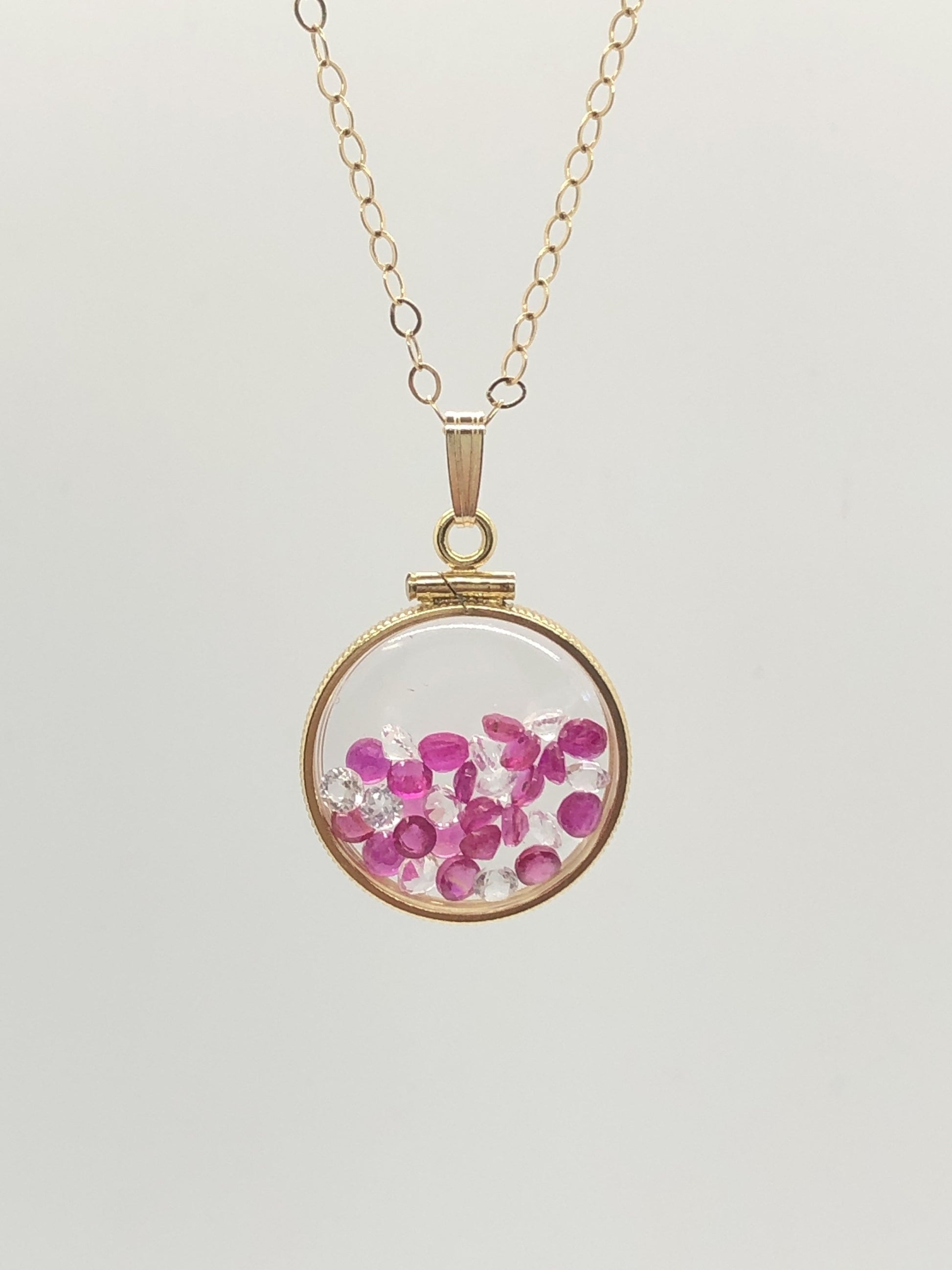 Handmade 5.6 tcw Ruby + Topaz Shaker Locket 14k gold filled/silver w/ beautiful July Birthstone