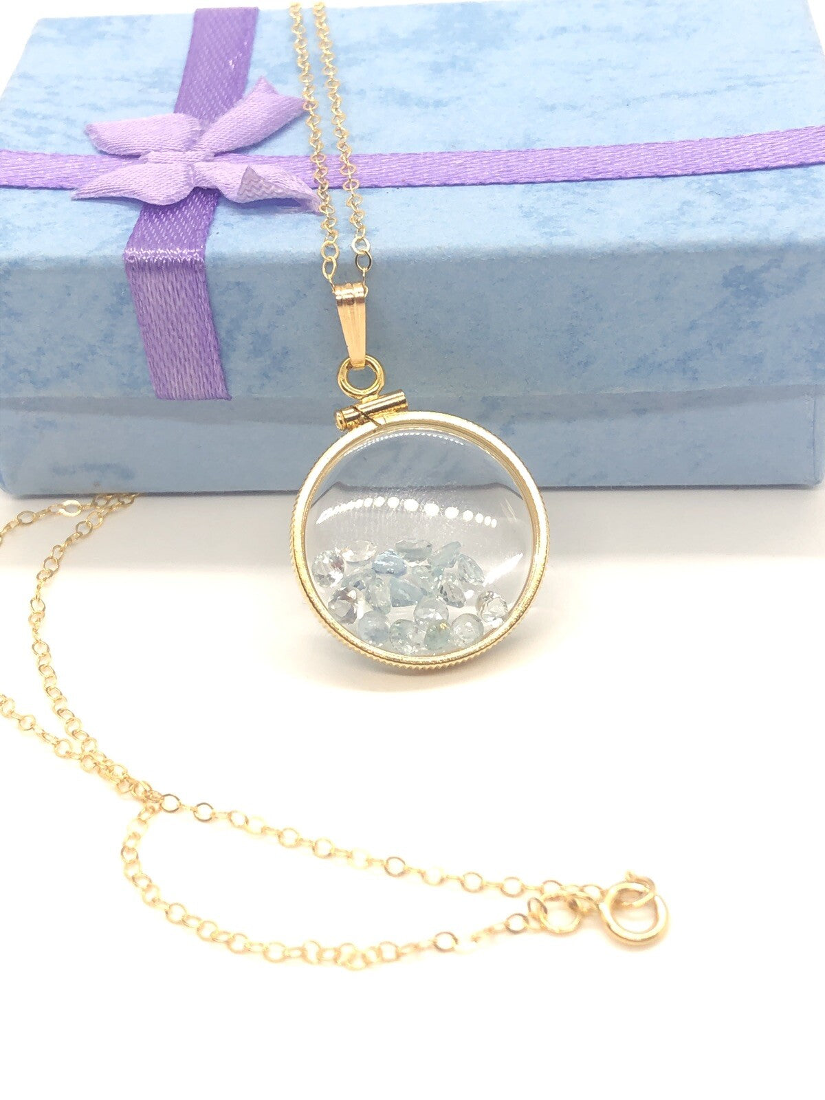 Handmade Aquamarine Shaker Locket 14k GF or Silver, Custom for Mother’s Day