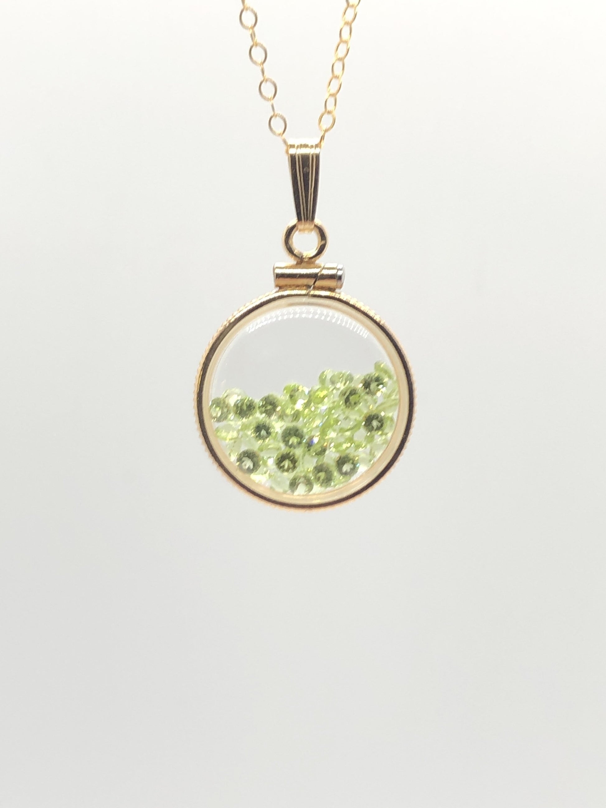 Handmade Dime Size Peridot Shaker Locket 14k gold filled beautiful August Birthstone, 2.5 TCW