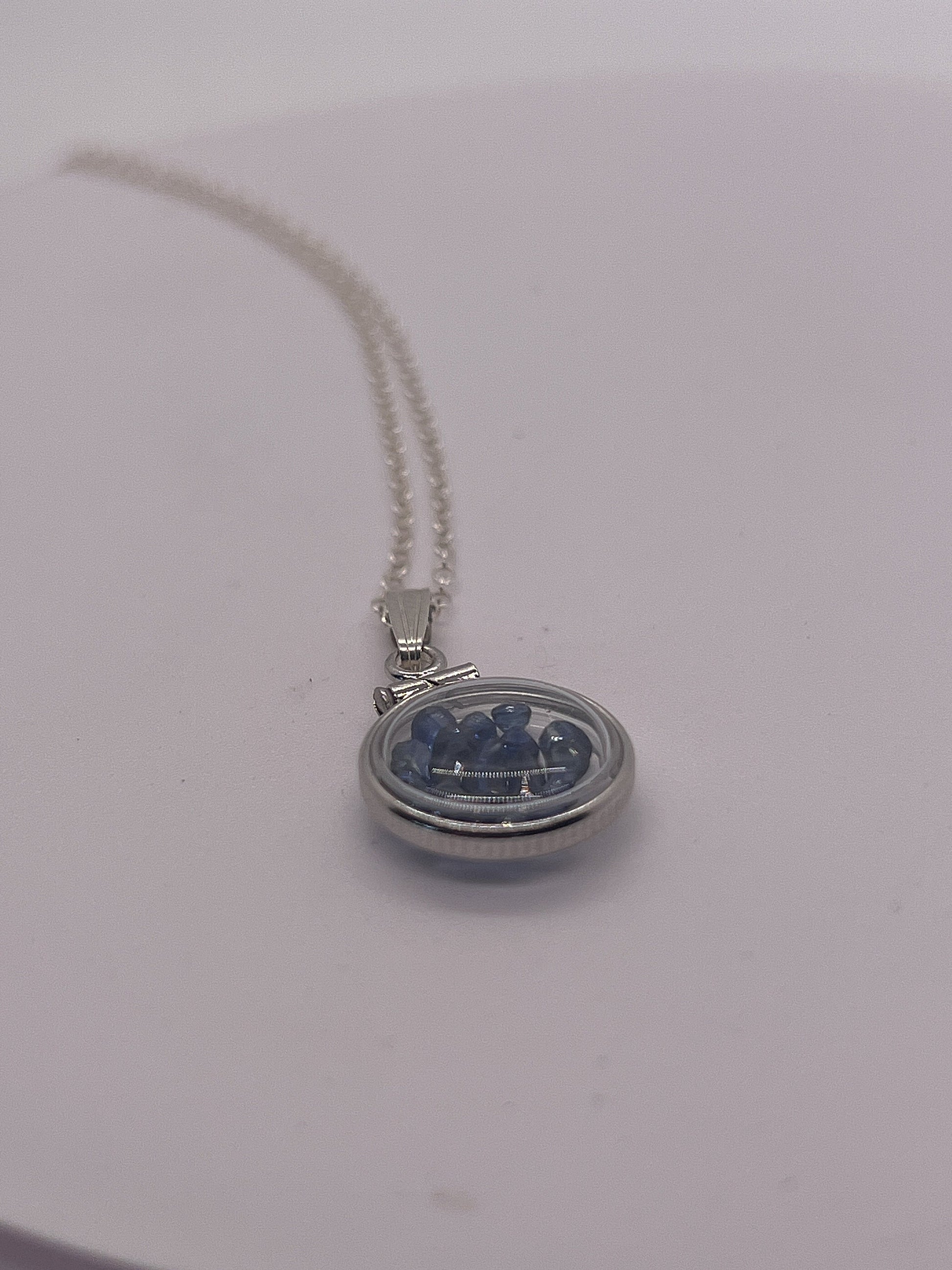 These are handmade so some small difference may be seen in any duplicate lockets.This Locket contains: 1.4 TCW. natural genuine blue round cut sapphire gemstones.I have other items listed using this small locket so take a peek to see if you like any other options. I also have a larger 20mm empty locket listed so you might take a look at that as well. This shaker locket can be viewed from both sides. Please see my other auctions for additional creations with these lockets. I also have an array of 50 year old vintage, new old stock lockets for sale as well, however, they are being sold little by little and their supply is dwindling. I have empty locket necklaces listed in several sizes and variety. Take a look Free shipping and lovely gift box included (colors may differ on gift boxes)To see other wonderful items click the links below: Click this link to see Vintage Shaker Locketshttps://www.etsy.com/shop/TimeTalentNTreasures?ref=seller-platform-mcnav§ion_id=28856113Click this link to see Handmade Crafted Shaker Locketshttps://www.etsy.com/shop/TimeTalentNTreasures?ref=seller-platform-mcnav§ion_id=32189637Click this link to see Handmade Bullet Shaker Locketshttps://www.etsy.com/shop/TimeTalentNTreasures?ref=seller-platform-mcnav§ion_id=29685070Click this link to see Handmade Vintage Bullet Shaker Locketshttps://www.etsy.com/shop/TimeTalentNTreasures?ref=seller-platform-mcnav§ion_id=32738269Click this link to see Vintage Silver Earringshttps://www.etsy.com/shop/TimeTalentNTreasures?ref=seller-platform-mcnav§ion_id=29685074