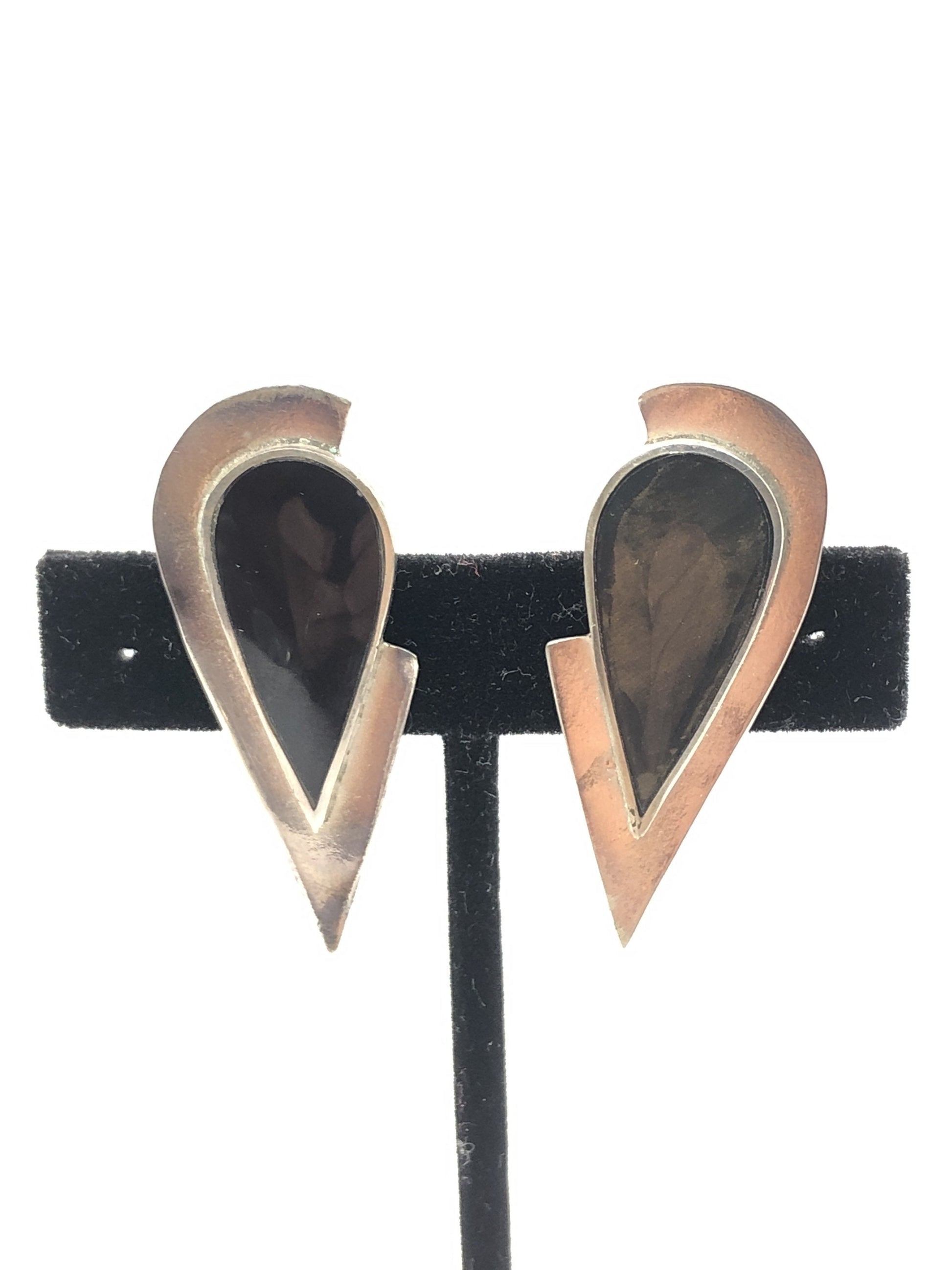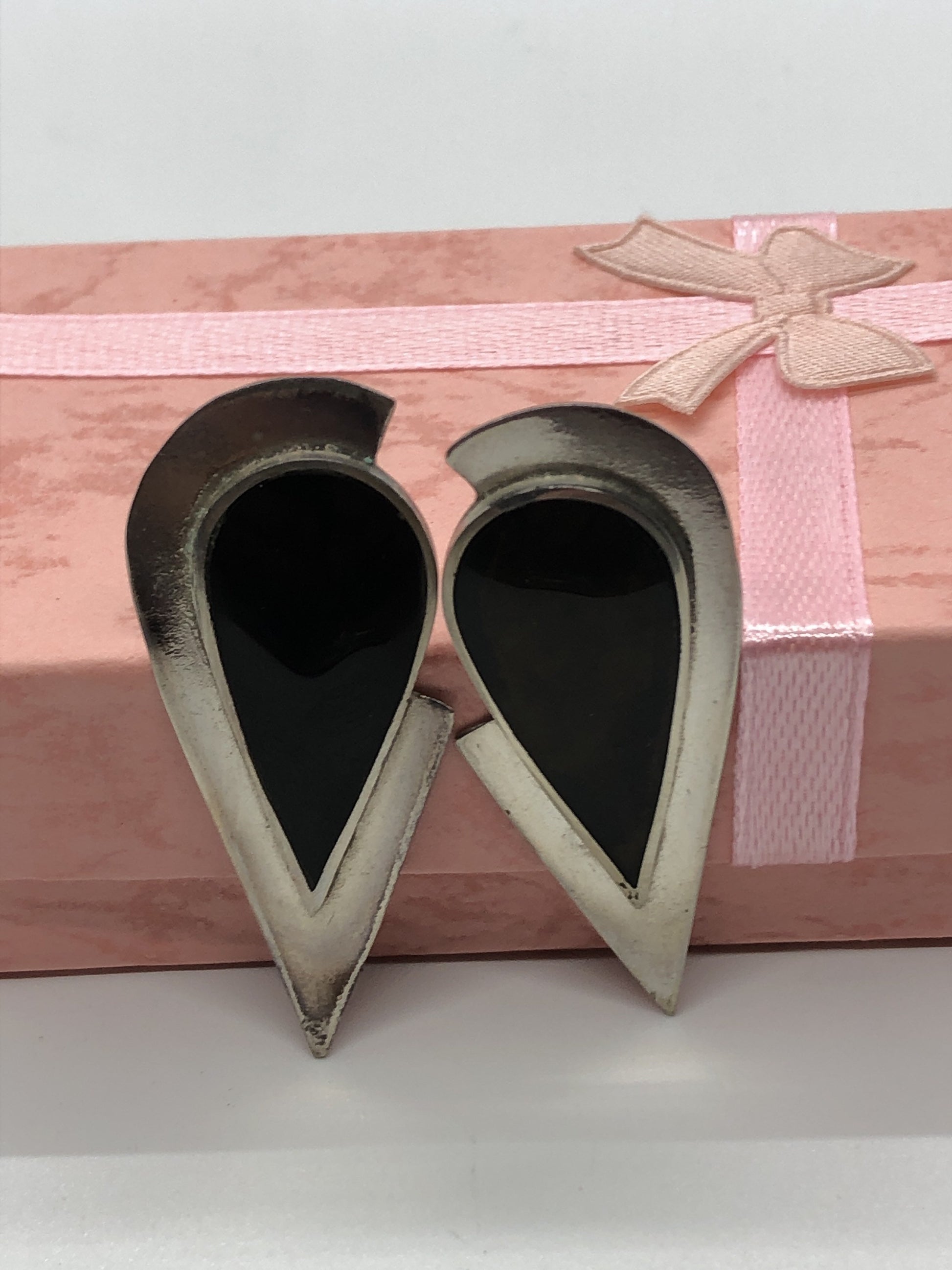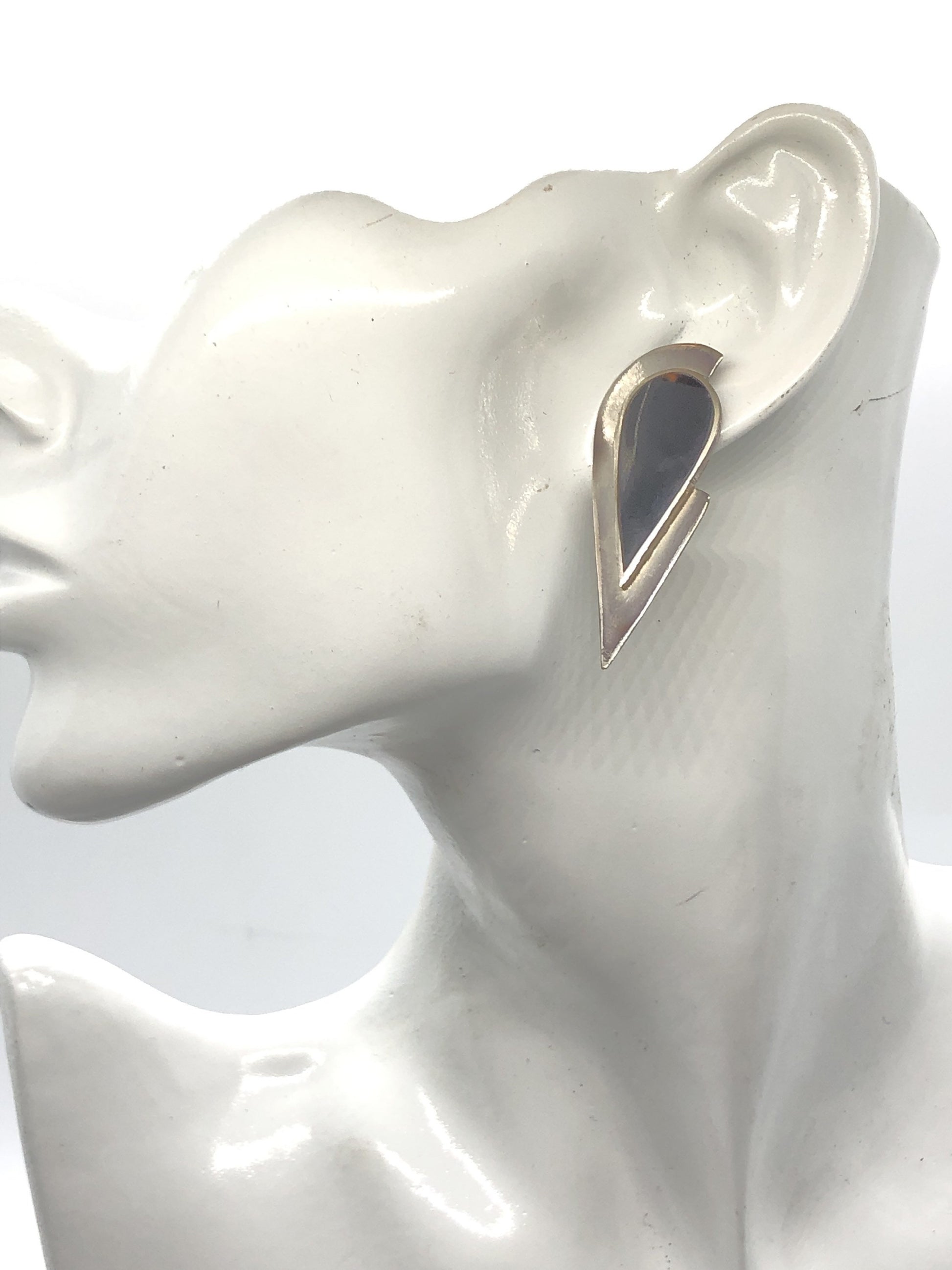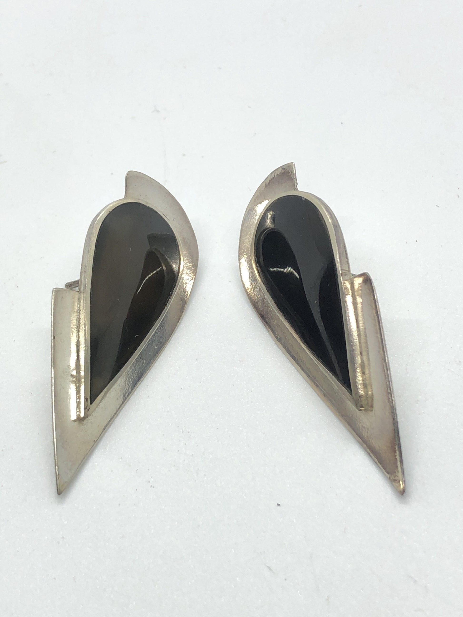 Handmade Sterling and Onyx post back Indonesia, Vintage new old stock, Beautiful tear drop shape