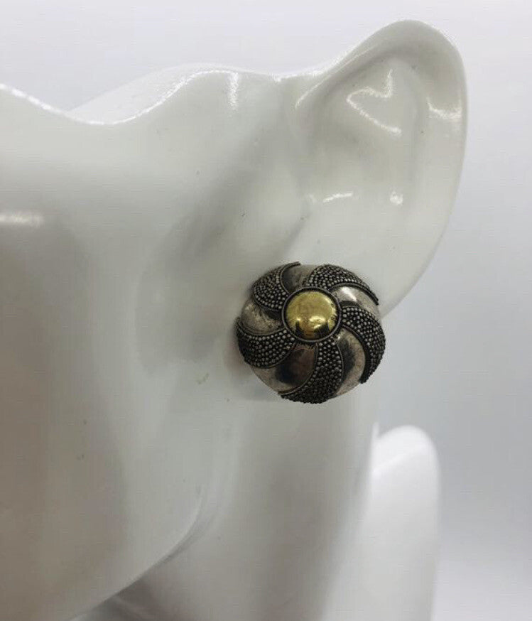 Handmade Sterling Earrings, Indonesia, Vintage new old stock. These were bought by me in the late 90's at an estate sale. They were new unworn items. These are hallmarked are 925 and are made of sterling silver. They are post back earrings and are finely crafted in Indonesia. I have only 2 pairs of these, There is a wonderful Gold wash over the sterling as shown in pick. As these are vintage there is a nice patina, however, I will leave that up to the buyer to decide to keep or not. Similar lot listed as well.