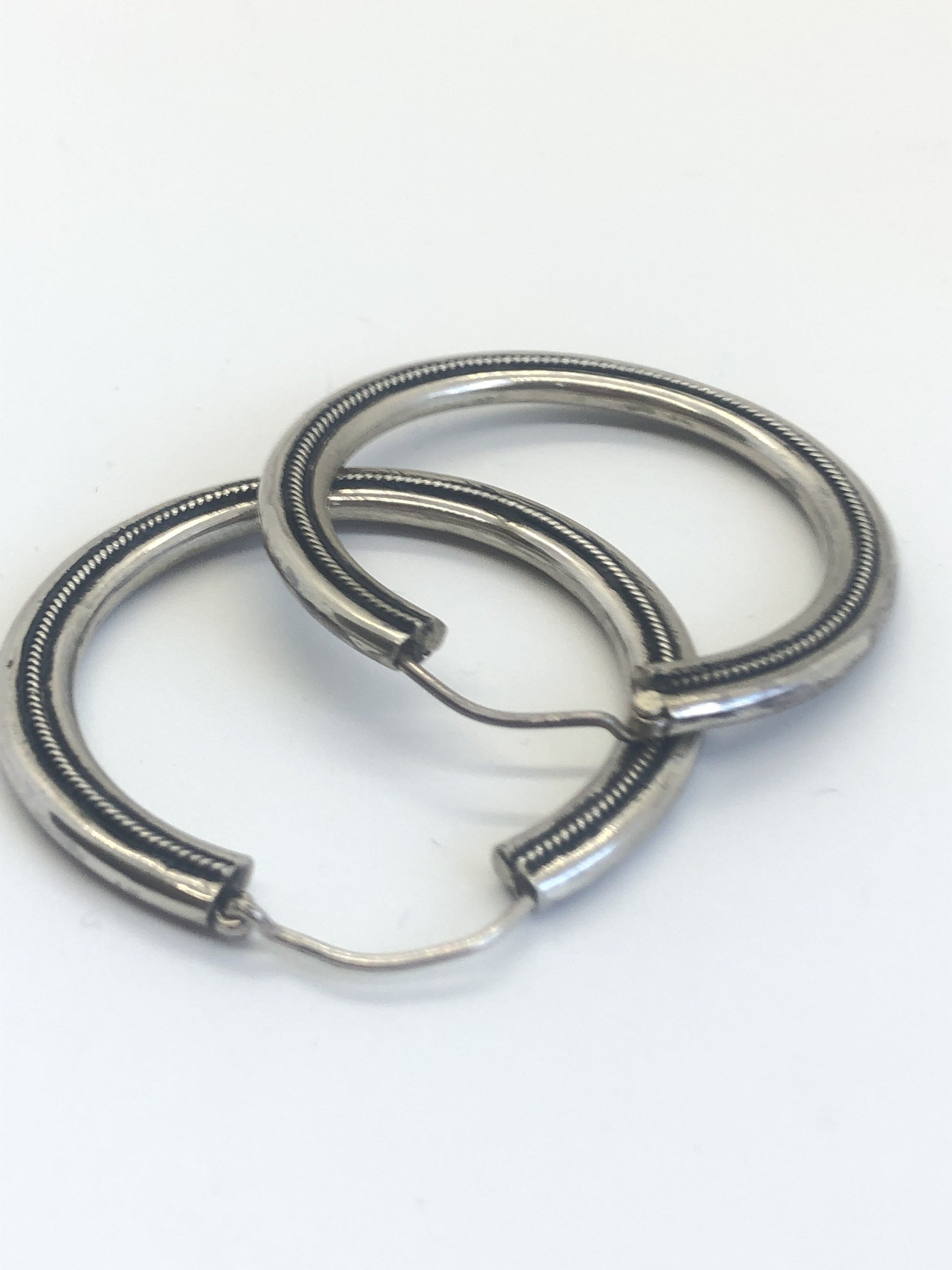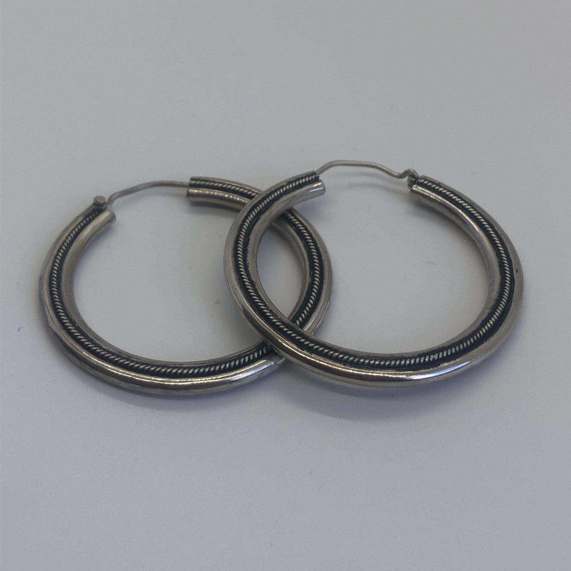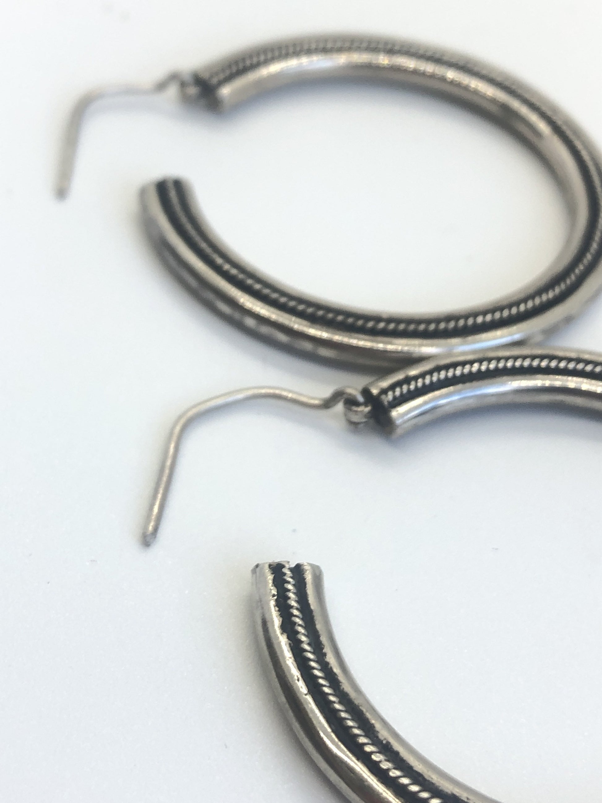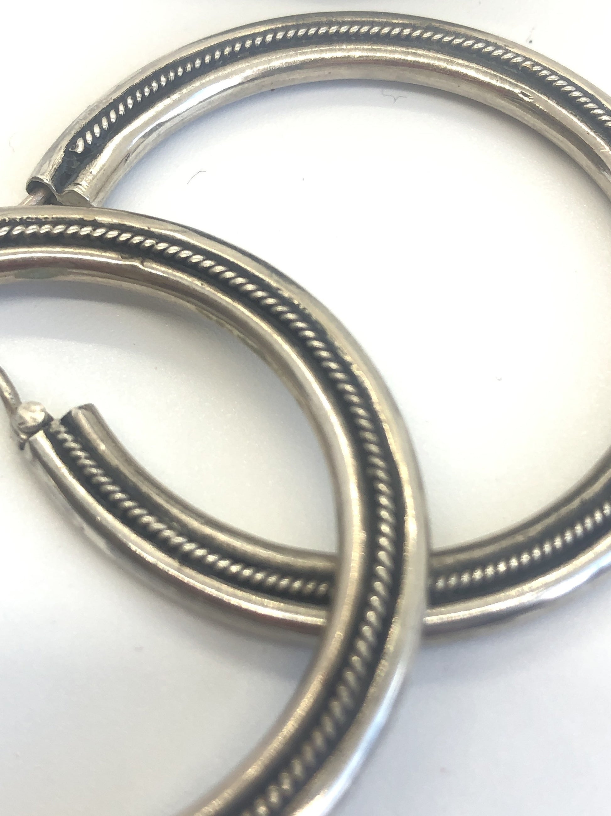 Large hoops Handmade Sterling Silver Earrings Indonesia, Vintage old stock, Beautiful and massive