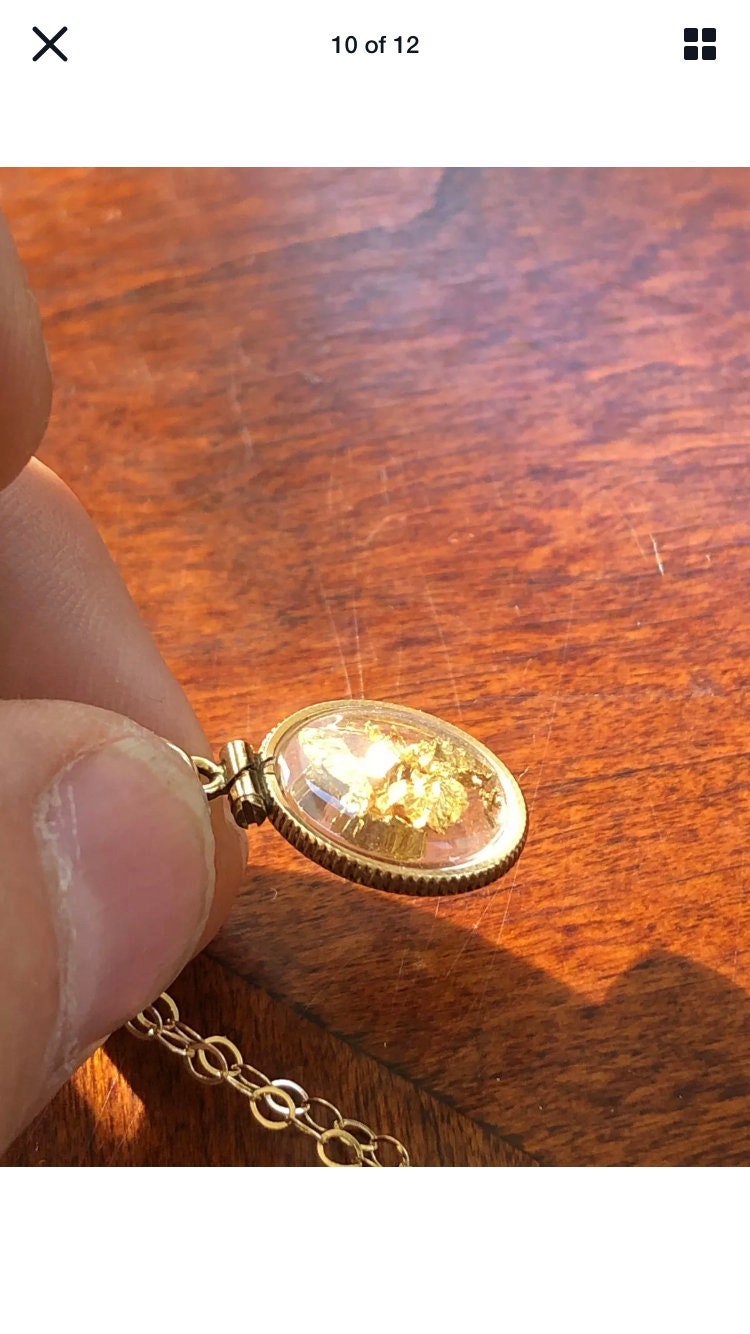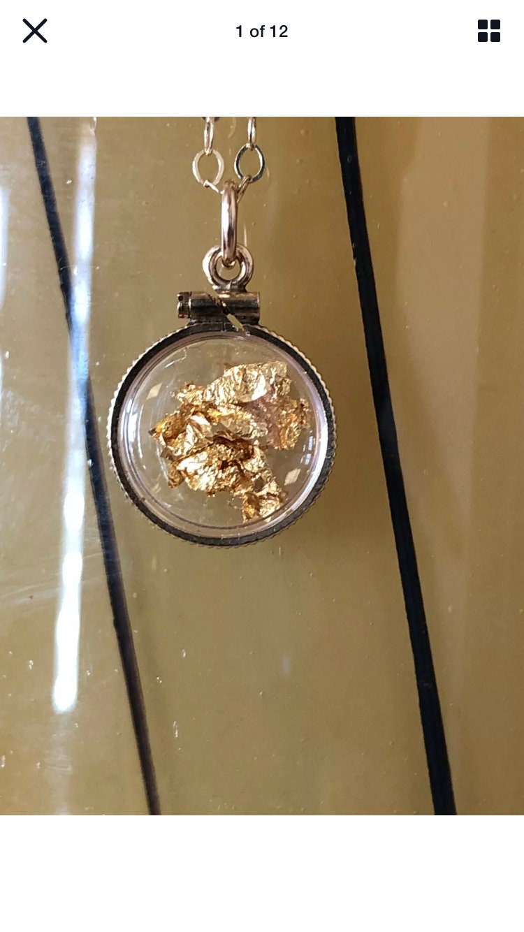 This Auction is the 15 mm locket : Vintage 12k gold filled locket with 23k gold inside, hand made new old stock. These lockets are made from the inherited contents of my grandfather's jewelry briefcase. Inside there were materials to make both an approximately 20mm ( large locket) and 15 mm (smaller locket). He had the 23k gold leaf (place carefully inside locket) and a bunch of other jewelry making materials. He also had a few completed lockets for a great example and wonderful stories to tell my kids. This briefcase was inherited actually by my father who also passed away leaving me to sort through it. My grandfather made and sold jewelry in his shop in Leadville, Colorado closing in the early 70's. I remember as a child that he was always giving these lockets as gifts to family and friends later in life. My daughter and I put together lockets for all the girls in the family this year for Christmas and now we are ready for production. We decide to put a few completed lockets up for sale. The locket components have been stored for over 50 years and have survived time quite nicely. They are new, old stock and have never been worn. I've added a new beautiful 18 inch 14k gold filled cable chain to each locket. They look elegant and retro and I think the essence of grandpa's creation has been accurately captured. The large locket is roughly the size of a quarter/ nickel and the smaller locket is the size of a dime. The lockets will have some oxidation due to age and each locket will have slightly different look as each is hand made. Please email any questions