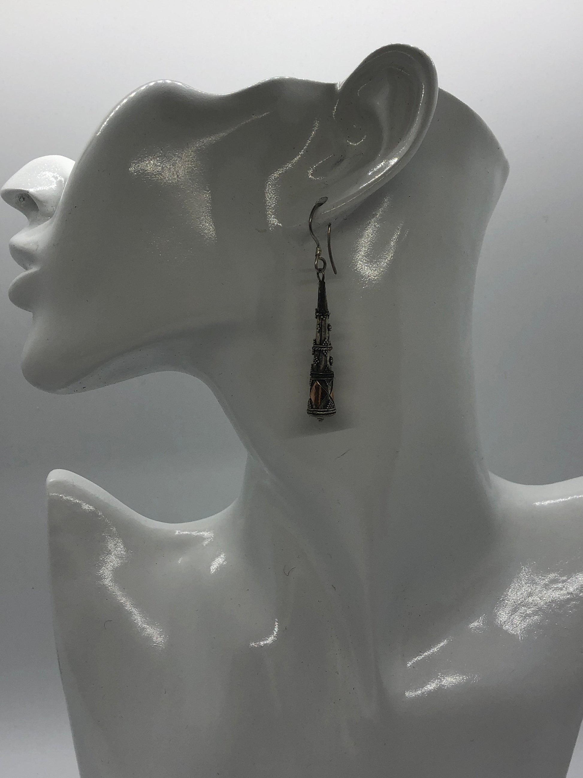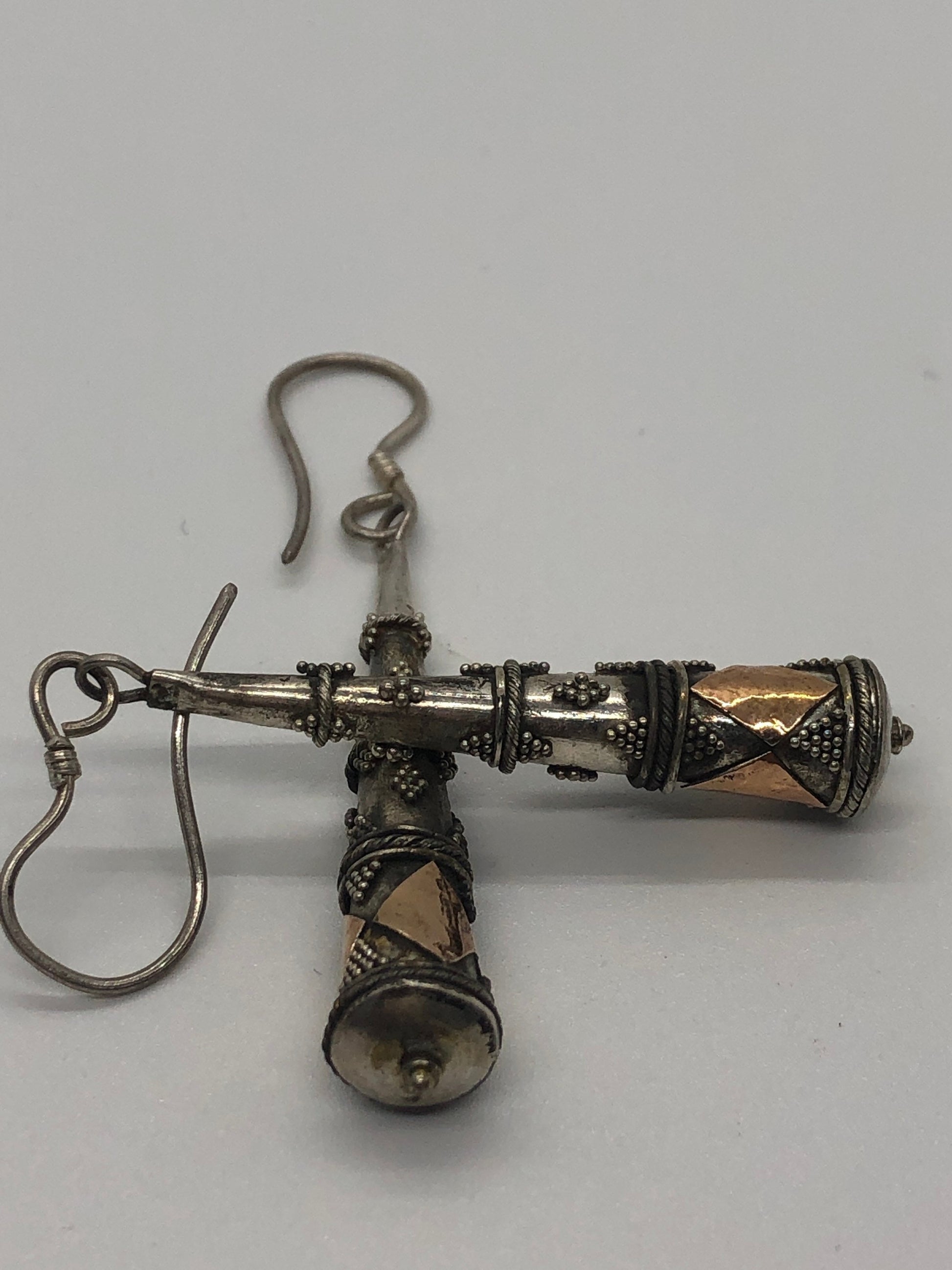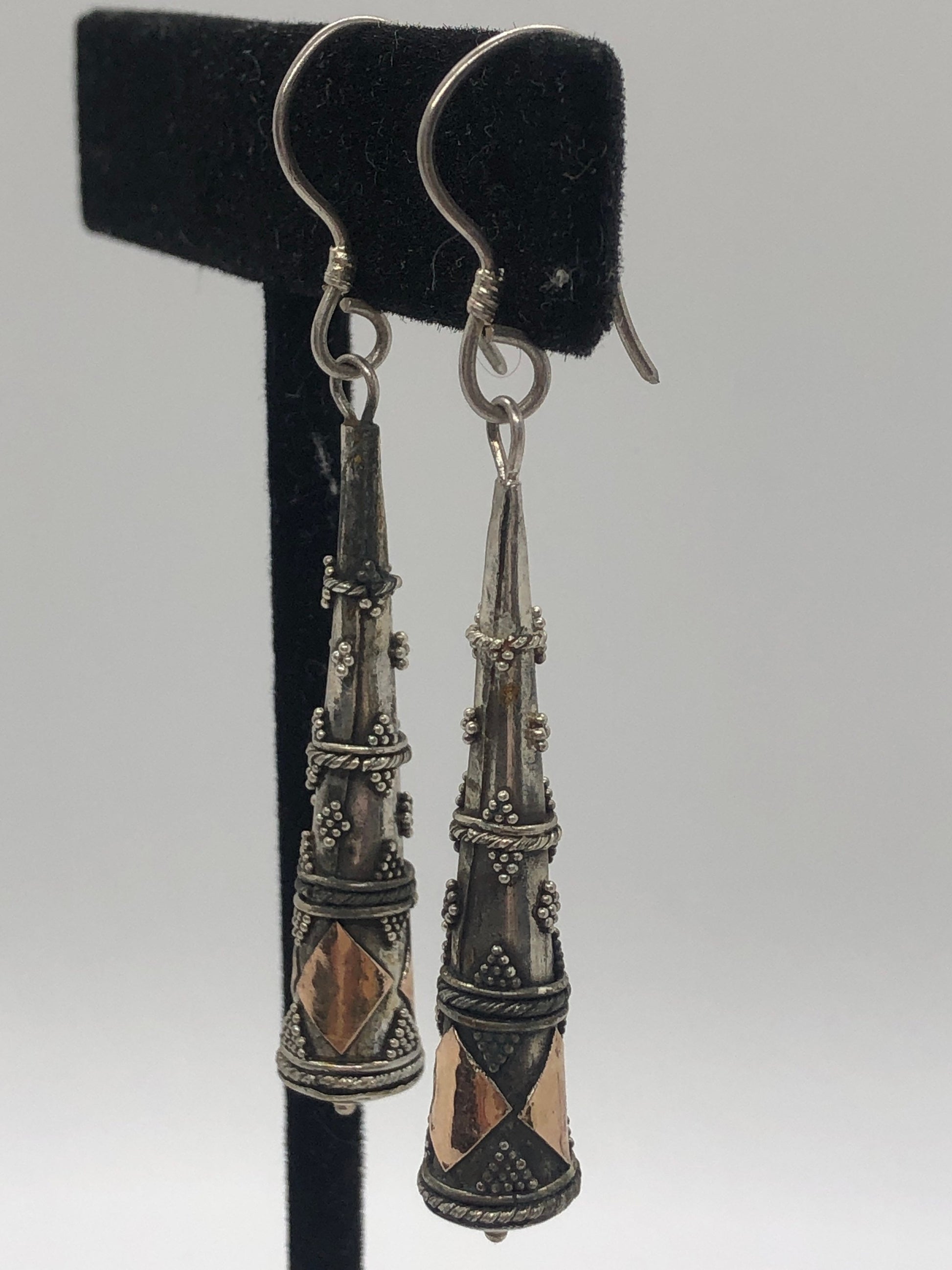 Vintage Hand made Indonesian Sterling Silver with Gold Wash Earrings, Large, new old stock, Ornate