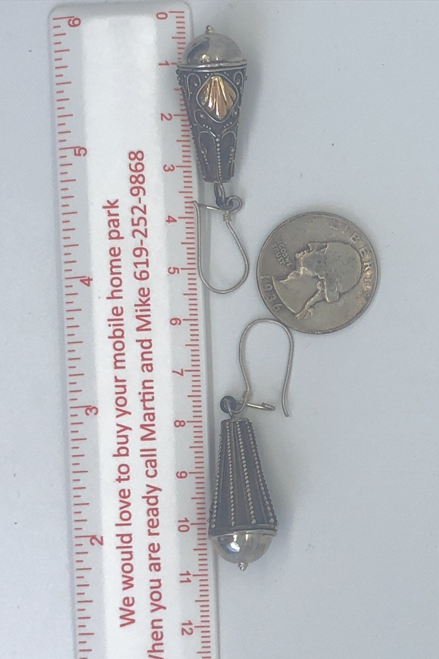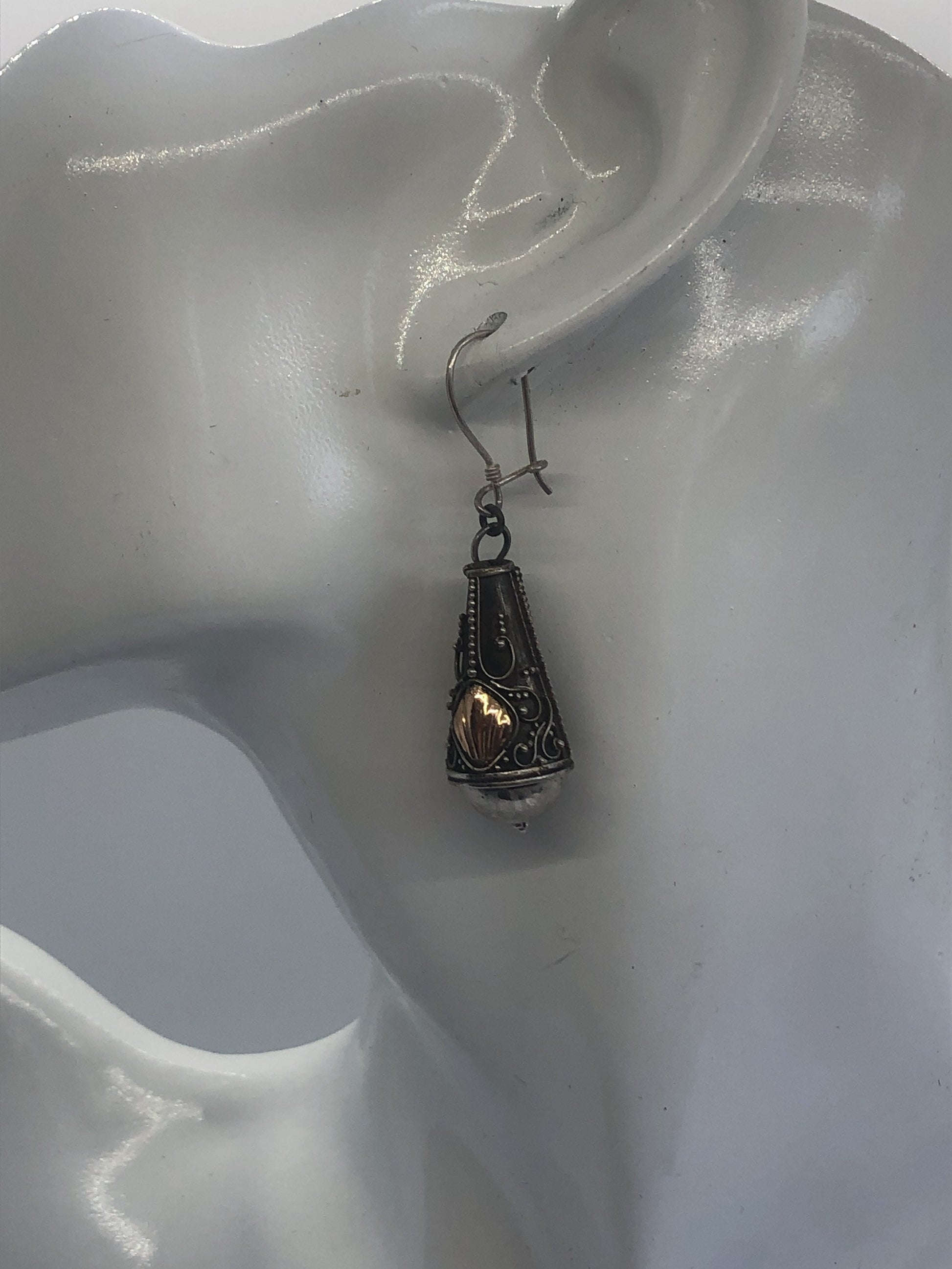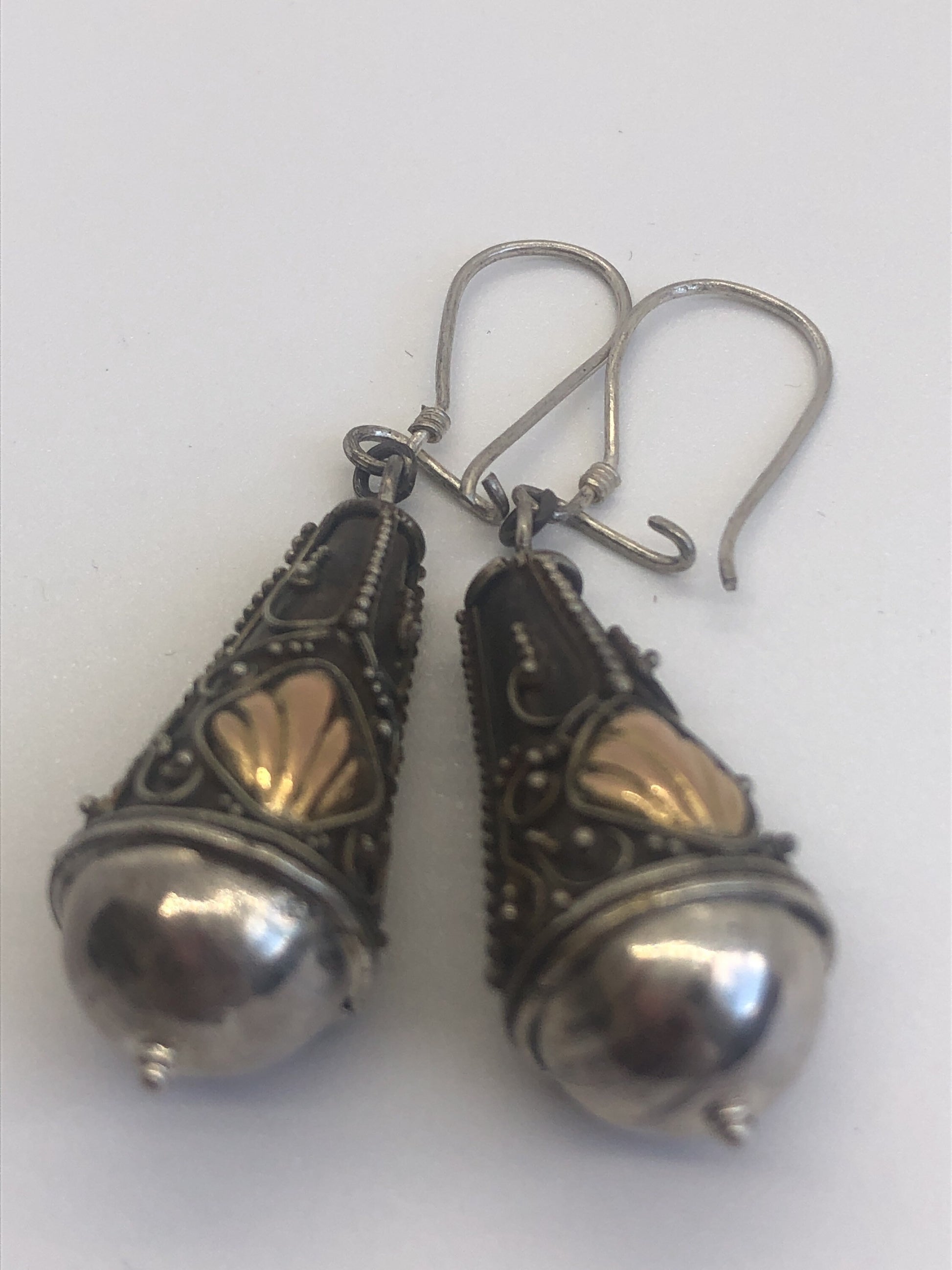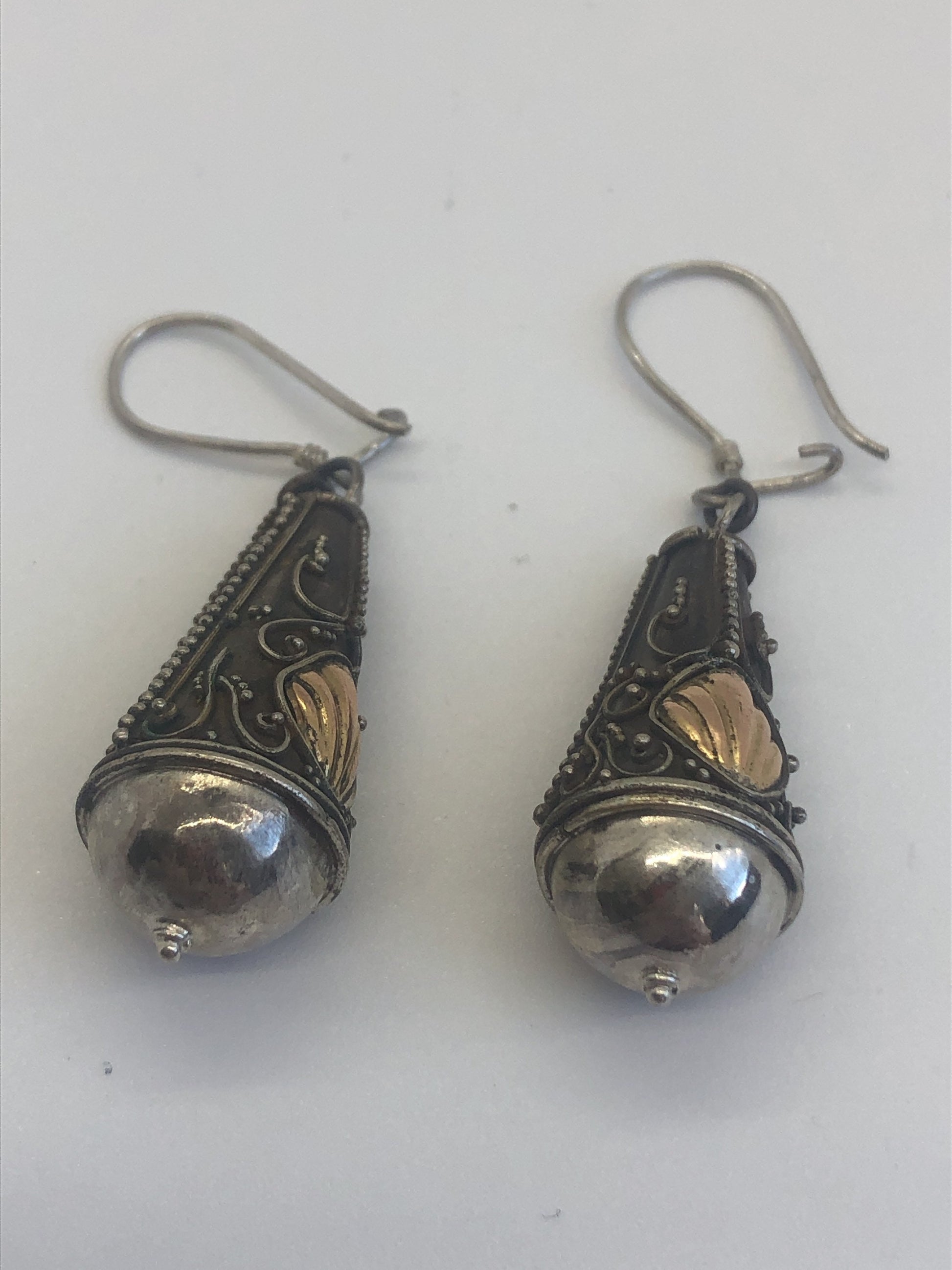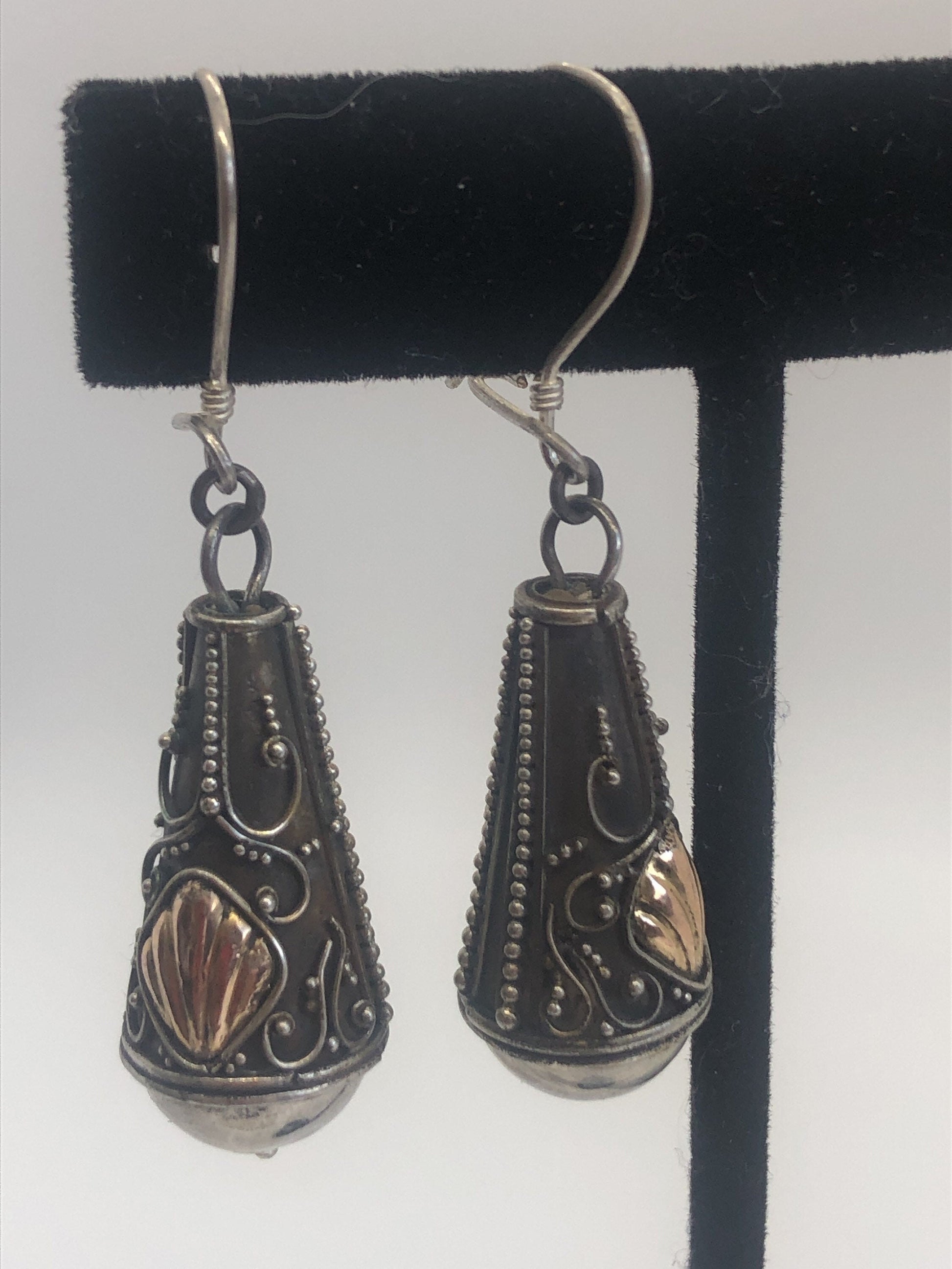 Vintage Handmade Sterling Silver and Gold Wash Earrings Indonesia, Vintage old stock, ornate