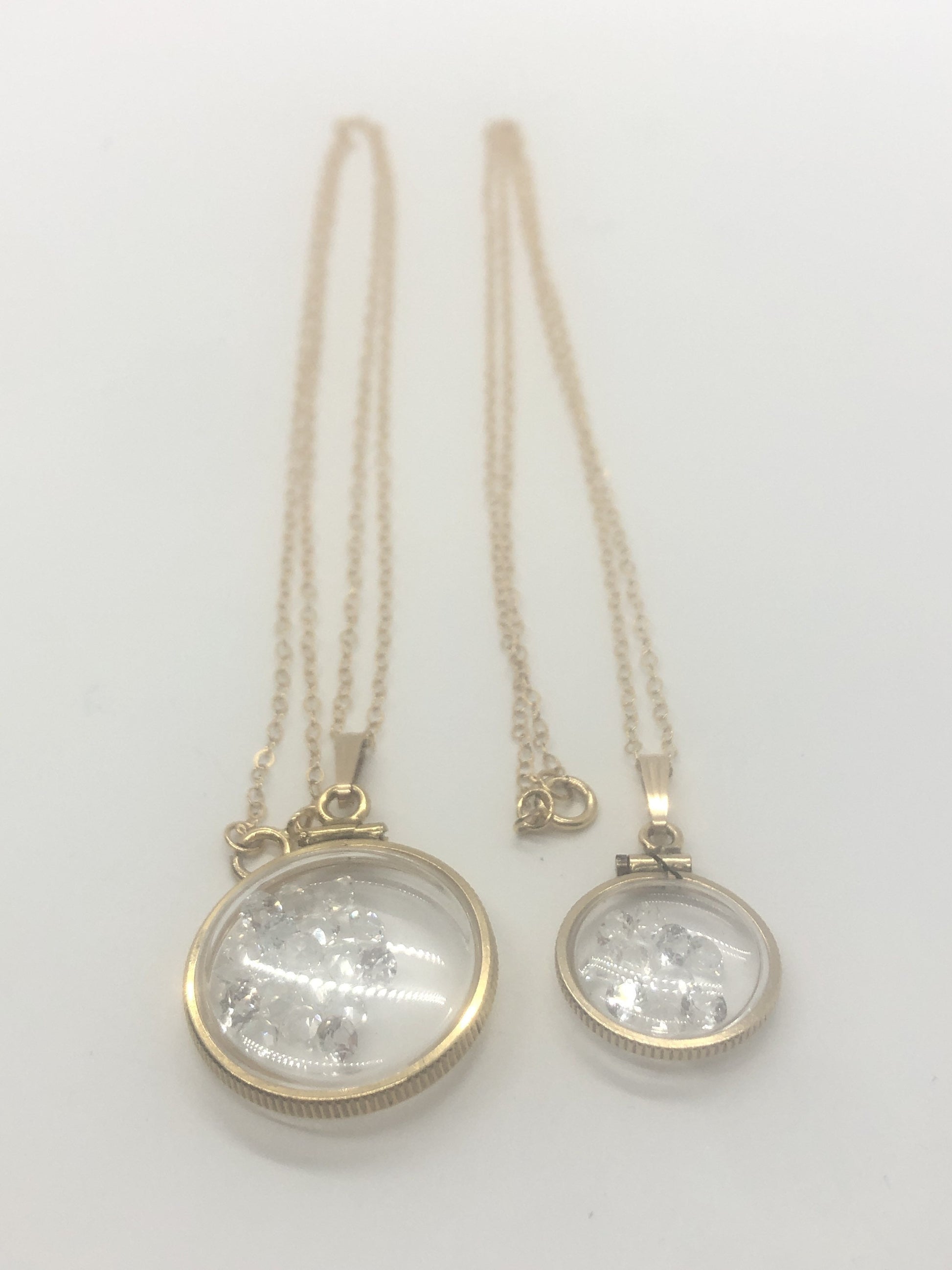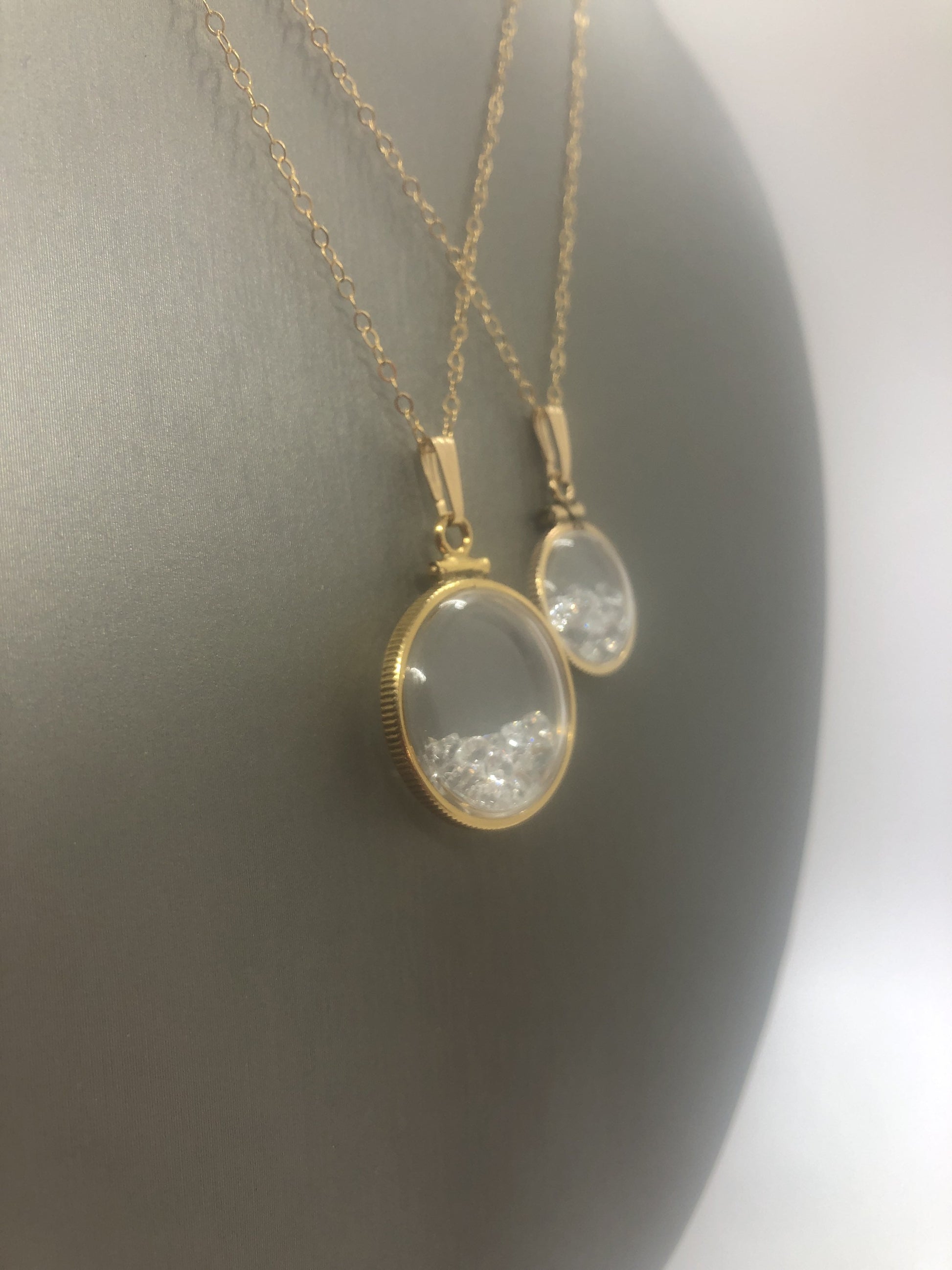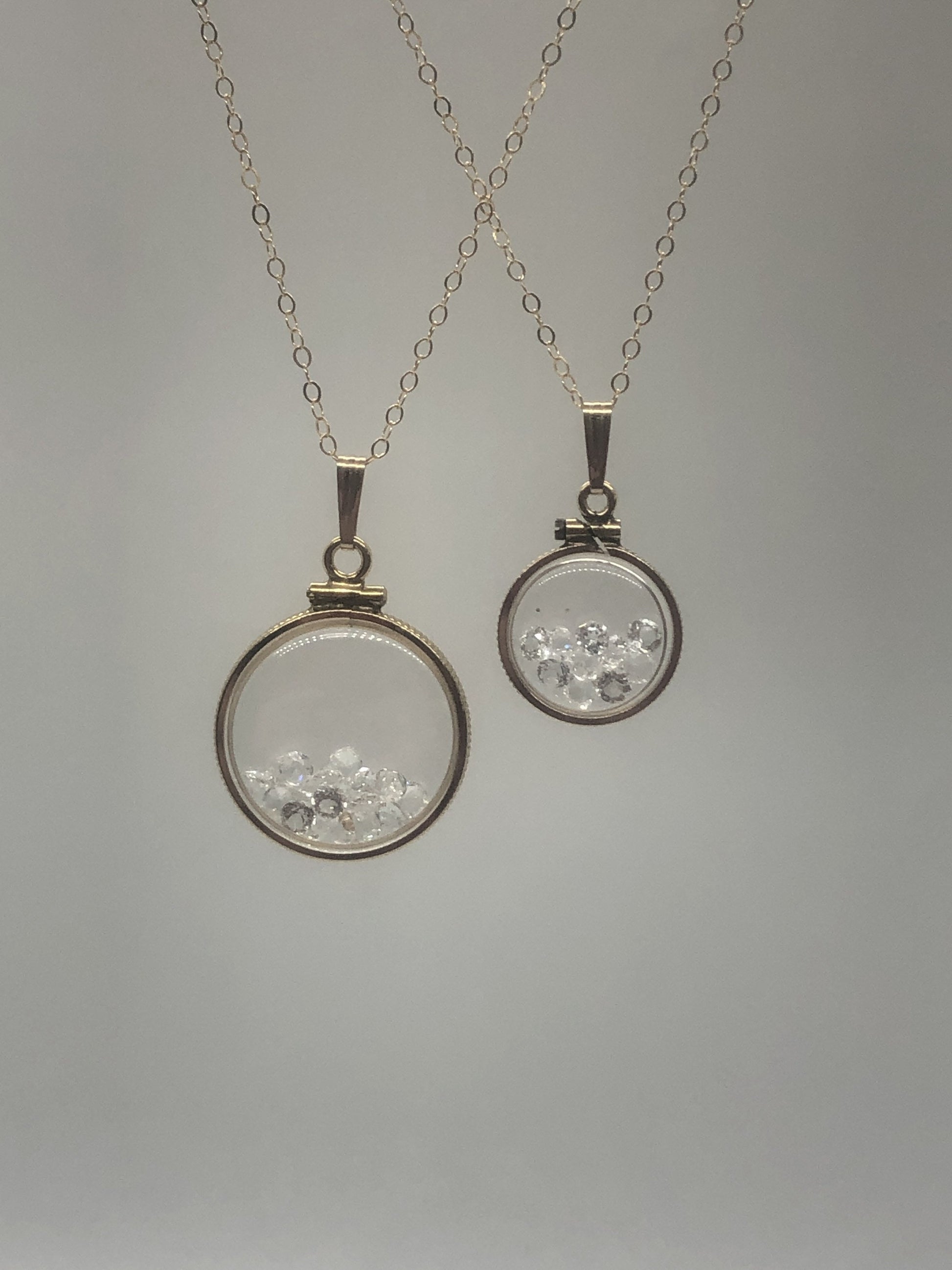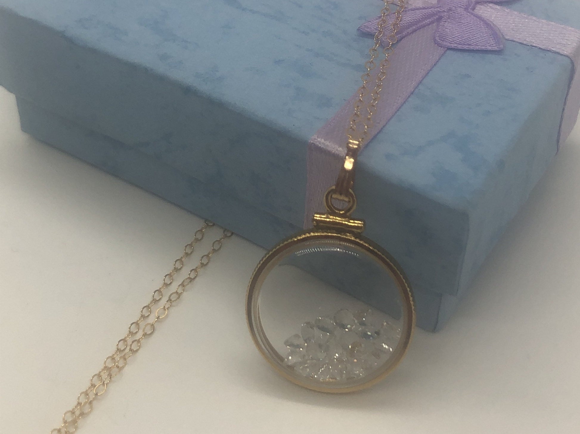 Click on my shop name to see all of my different locketsUp for sale: A 20 mm or 15 mm Vintage 12k gold filled shaker locket glowing bright with April birthstone gems inside. If your birthstone is Topaz (birthstone for April ) or you just like cool eye catching vintage jewelry, then this locket is for you. I inherited these wonderful lockets (empty) from my grandfather who made and sold jewelry in his shop in Leadville, Colorado closing in the early 70's. The locket components have been stored for over 50 years and have survived time quite nicely. They are new, old stock and have never been worn. I've added a new 18 inch 14k gold filled cable chain, an embossed pinch bail, and a few new gemstones to create an eye catching creation. Please see my other auctions for additional creations with these lockets. These are hand made so some small difference may be seen in any duplicate lockets